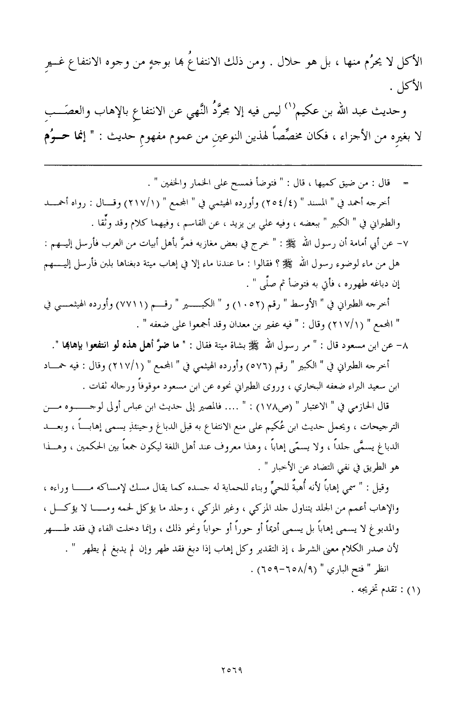 وحديث عبد الله بن عكيم (¬1) ليس فيه إلا مجرد النهي عن الانتفاع بالإهاب والعصب لا بغيره من الأجزاء، فكان مخصصًا لهذين النوعين من عموم مفهوم حديث: «إنما حرم