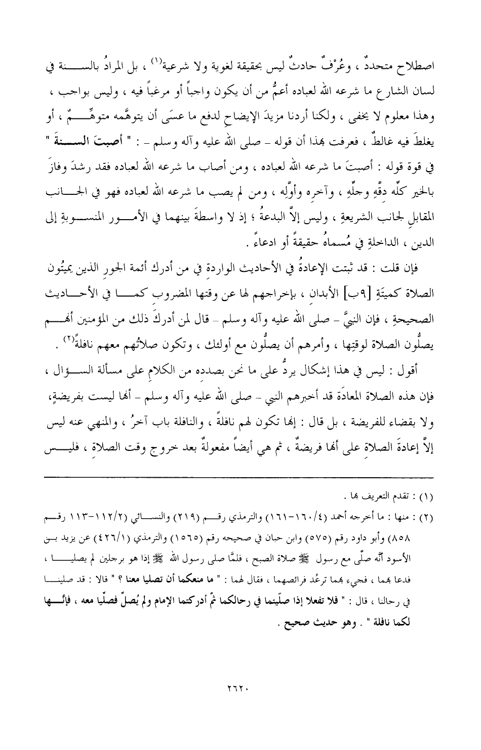 فإن قلت: قد ثبتت الإعادة في الأحاديث الواردة في من أدرك أئمة الجور الذين يميتون الصلاة كميتة [9ب] الأبدان. بإخراجهم لها عن وقتها المضروب كما في الأحاديث الصحيحة، فإن النبي- صَلَّى اللهُ عَلَيْهِ وَآلِهِ وَسَلَّمَ- قال لمن أدرك ذلك من المؤمنين أنهم يصلون الصلاة لوقتها، وأمرهم أن يصلون مع أولئك، وتكون صلاتهم معهم نافلة (¬2).