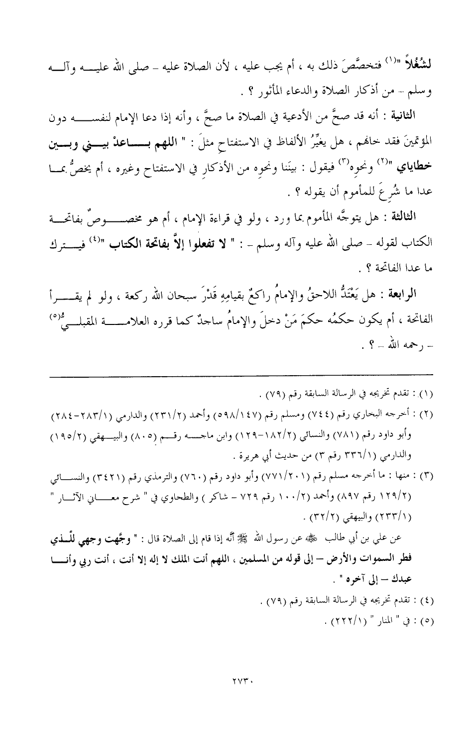 (¬4) تقدم تخريجه في الرسالة السابقه رقم (79).