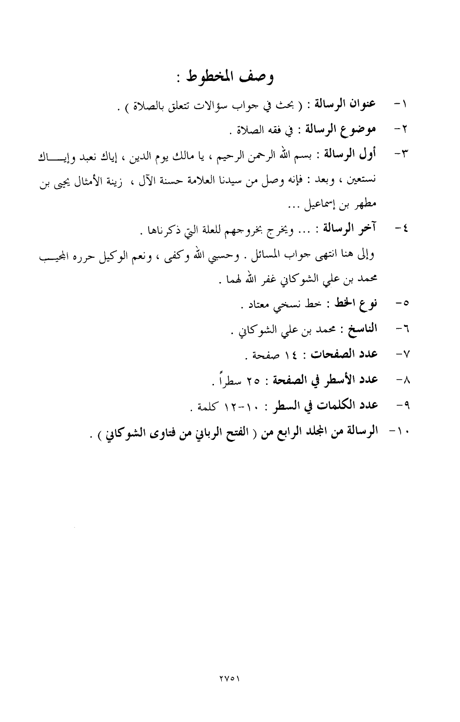الرسالة من المجلد الرابع من (الفتح الرباني من فتاوى الشوكاني).