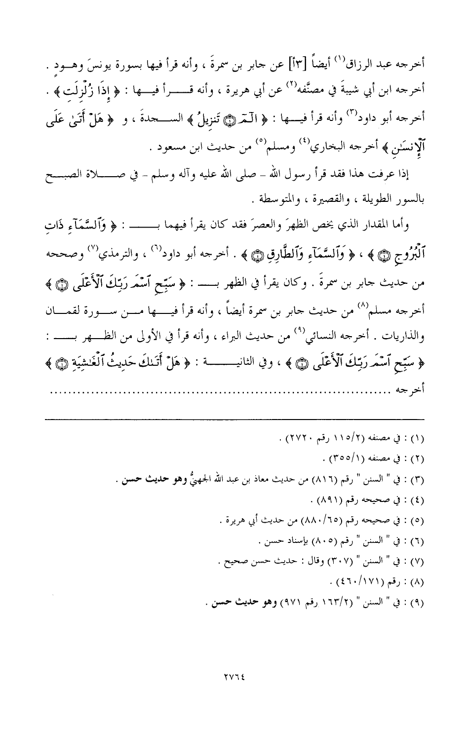 أخرجه عبد الرزاق (¬1) أيضًا [3أ] عن جابر بن سمرة، وأنه قرأ فيها بسورة يونس وهود. أخرجه ابن أبي شيبة في مصنفه (¬2) عن أبي هريرة، وأنه قرأ فيها: (إِذَا زُلْزِلَتِ). أخرجه أبو داود (¬3) وأنه قرأ فيها: (؟) السجدة، و (هَلْ أَتَى عَلَى الْإِنْسَانِ) أخرجه البخاري (¬4) ومسلم (¬5) من حديث ابن مسعود.