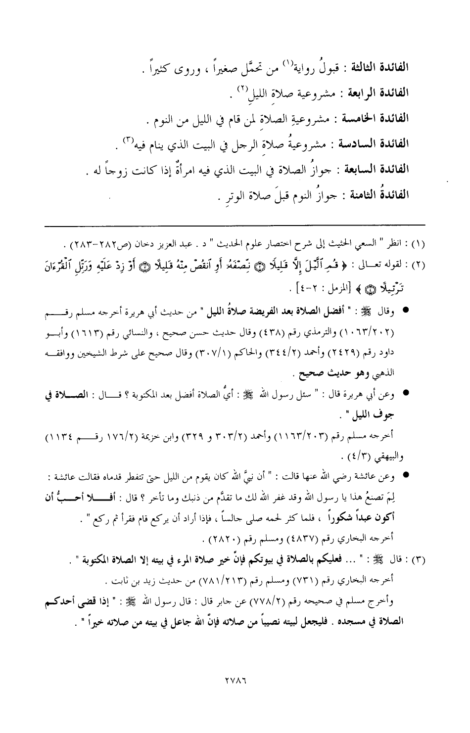 الفائدة الرابعة: مشروعية صلاة الليل (¬2)