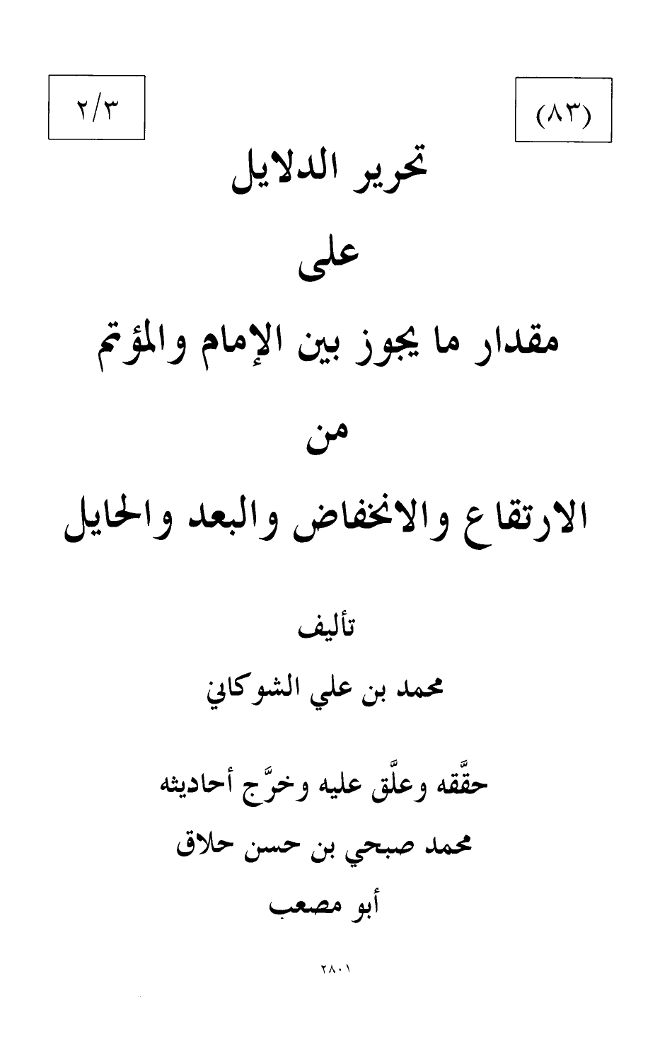 تحرير الدلائل على مقدار ما يجوز بين الإمام والمؤتم من الارتفاع والانخفاض والبعد والحائل