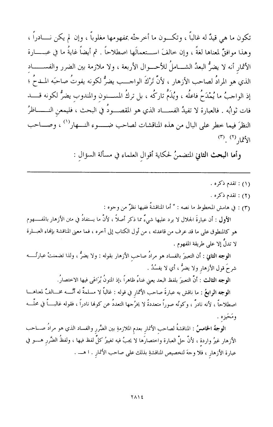 (¬3) في هامش المخطوط ما نصه: "أما المناقشة ففيها نظر من وجوه: