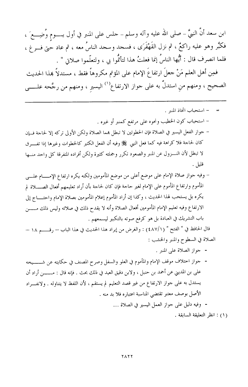 فمن أهل العلم من جعل ارتفاع الإمام على المؤتم مكروها فقط، مستدلا بهذا الحديث الصحيح، ومنهم من استدل به على جواز الارتفاع (¬1) اليسير، ومنهم من رجحه على