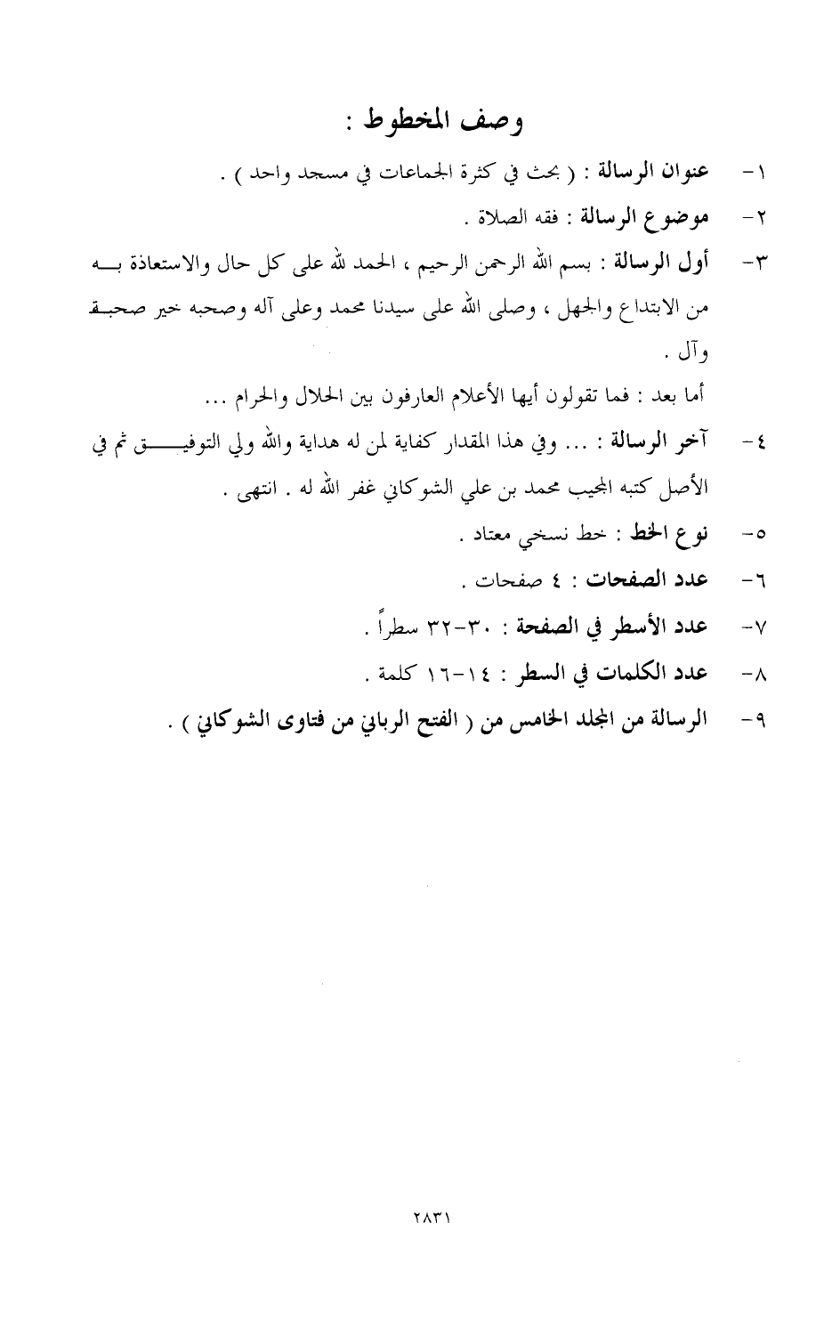 9 - الرسالة من المجلد الخامس من (الفتح الرباني من فتاوى الشوكاني).