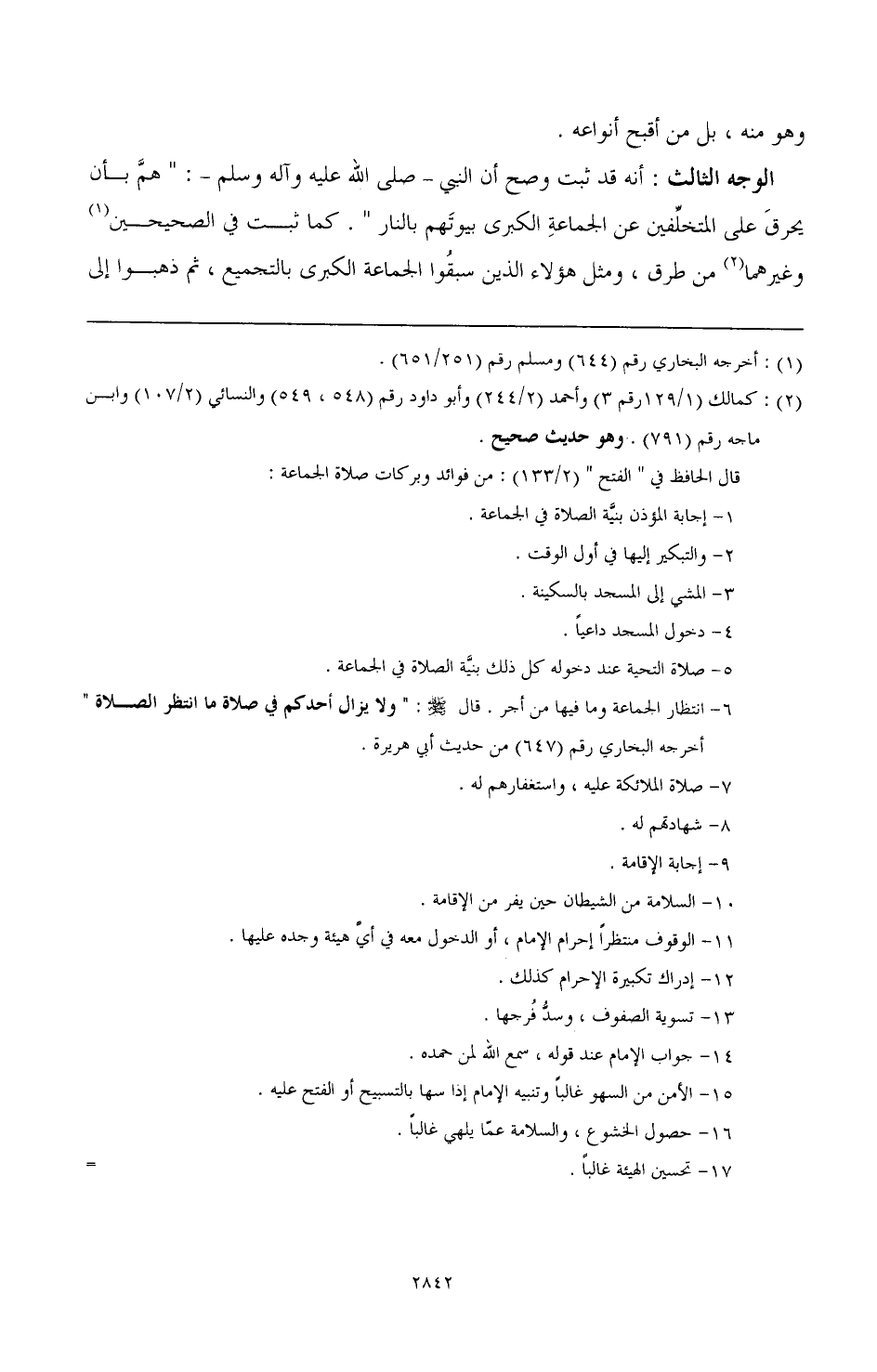 قال الحافظ في " الفتح" (2): من فوائد وبركات صلاة الجماعة: