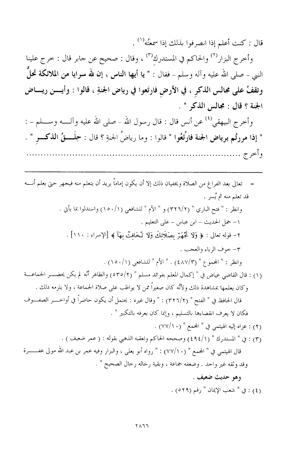 وأخرج البيهقي (¬4) عن أنس قال: قال رسول الله - صَلَّى اللهُ عَلَيْهِ وَآلِهِ وَسَلَّمَ - " إذا مررتم برياض الجنة فارتعوا: قالوا: وما رياض الجنة؟ قال: حلق الذكر ". وأخرج .............................