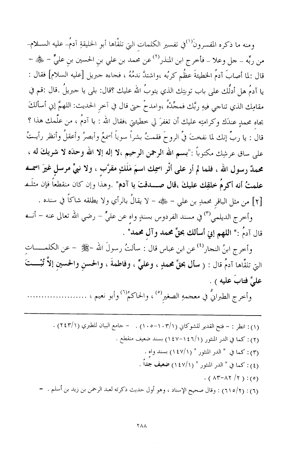 وأخرج الديلمي (¬3) في مسند الفردوس بسند واه عن علي- رضي الله تعالى عنه- أنه قال آدم: "اللهم إني أسألك بحق محمد وآل محمد".