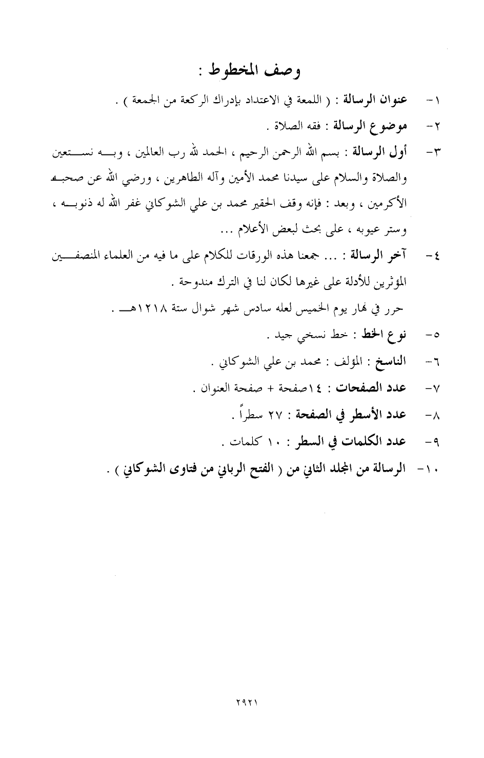 10 - الرسالة من المجلد الثاني من (الفتح الرباني من فتاوى الشوكاني).
