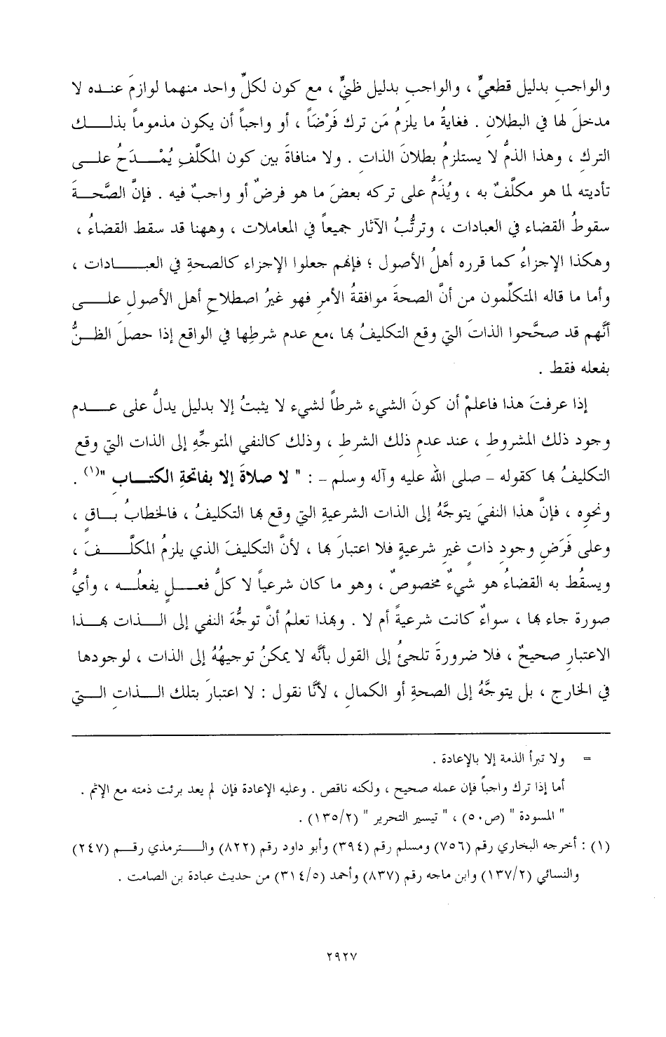 (¬1) أخرجه البخاري رقم (756) ومسلم رقم (394) وأبو داود رقم (822) والترمذي رقم (247) وابن ماجه رقم (837) وأحمد (5/ 314) من حديث عبادة بن الصامت.