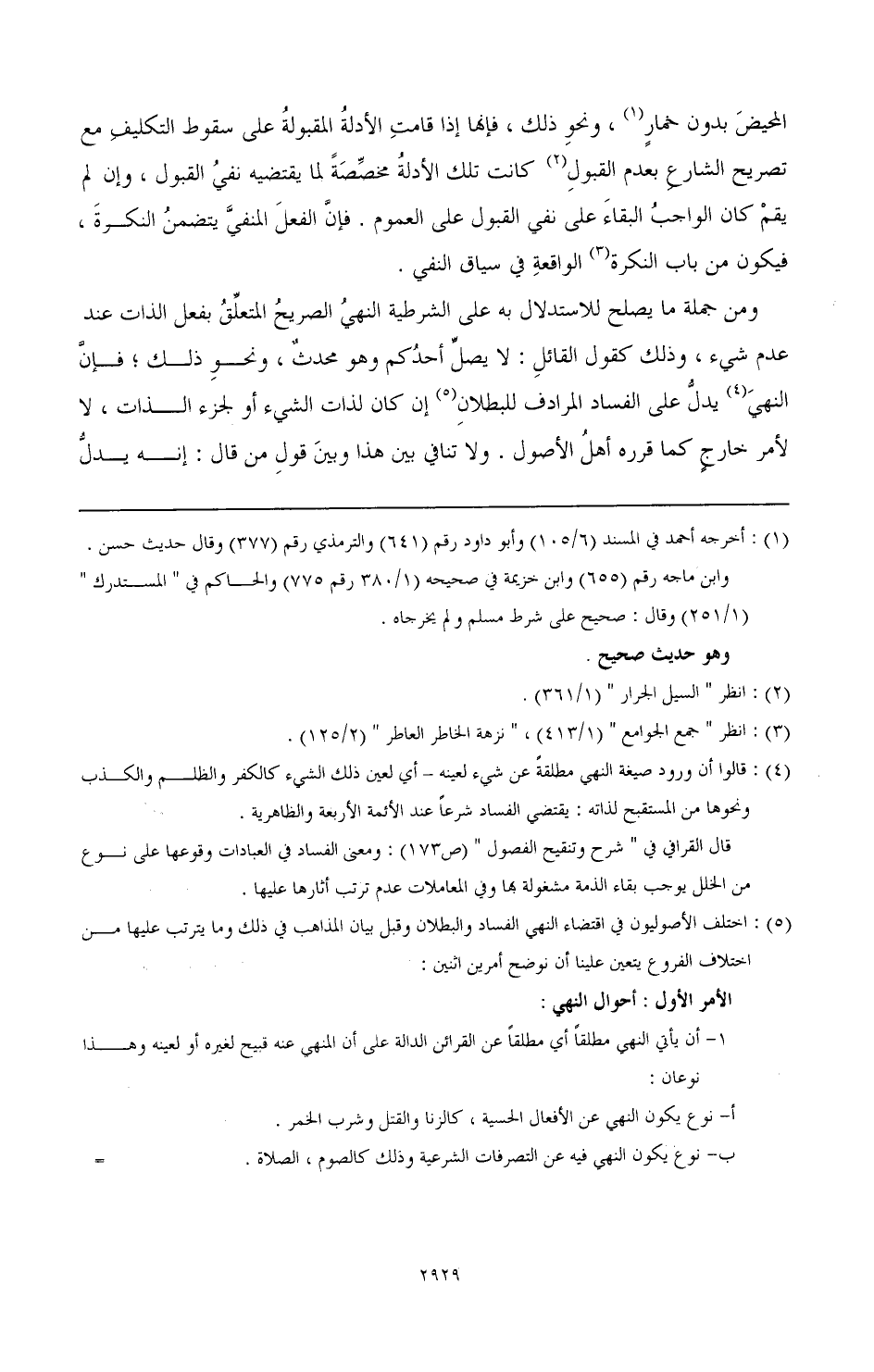 (¬5) اختلف الأصوليون في اقتضاء النهي الفساد والبطلان وقيل بيان المذاهب في ذلك وما يترتب عليها من اختلاف الفروع يتعين علينا أن نوضح أمرين أثنين: