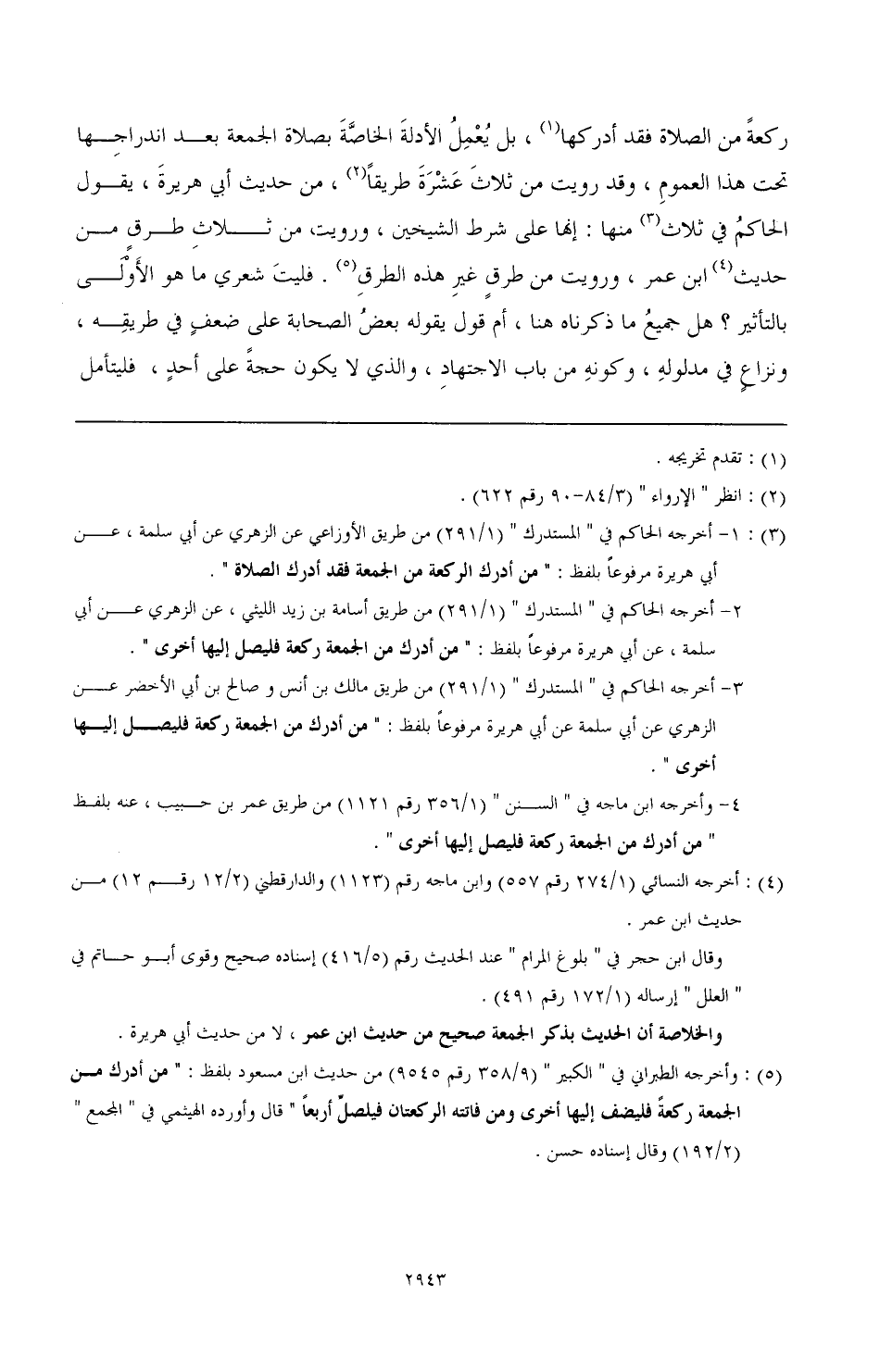 (¬3) 1 - أخرجه الحاكم في المستدرك (1/ 291) من طريق الأوزاعي عن الزهري عن أبي سلمة، عن أبي هريرة مرفوعًا بلفظ: من أدرك الركعة من الجمعة فقد أدرك الصلاة.