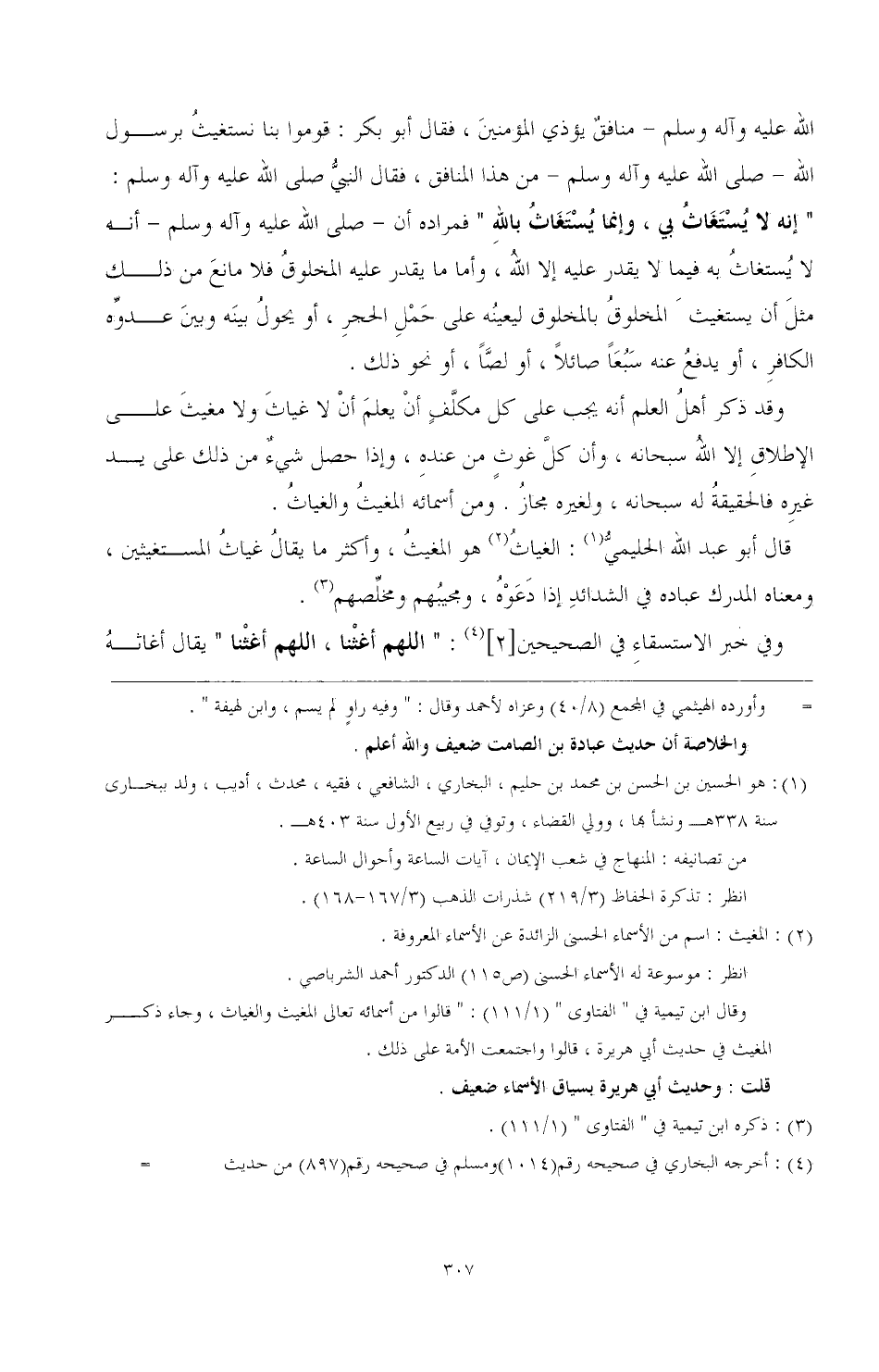 (¬2) المغيث: اسم من الأسماء الحسنى الزائدة عن الأسماء المعروفة.