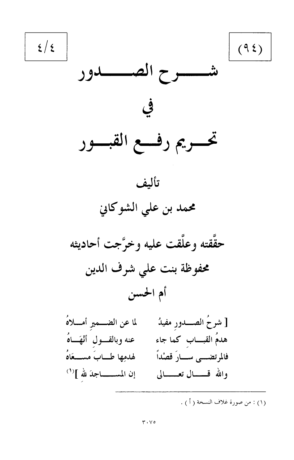 حققته وعلقت عليه وخرجت أحاديثه محفوظة بنت على شرف الدين أم الحسن