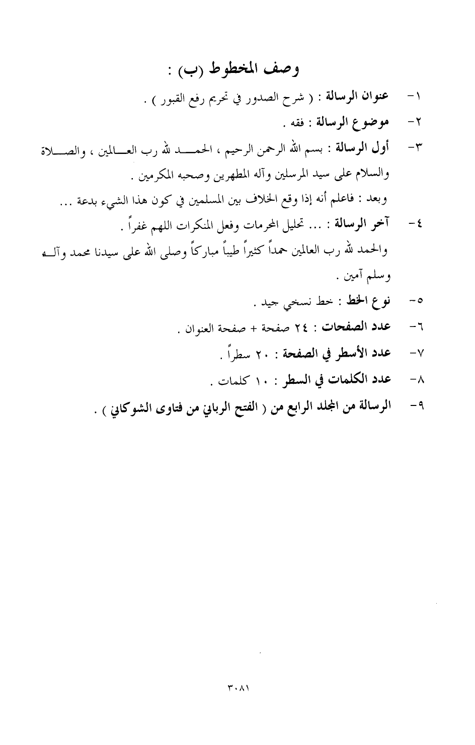 3 - أول الرسالة: بسم الله الرحمن الرحيم، الحمد لله رب العالمين، والصلاة والسلام على سيد المرسلين وآله المطهرين وصحبه المكرمين.