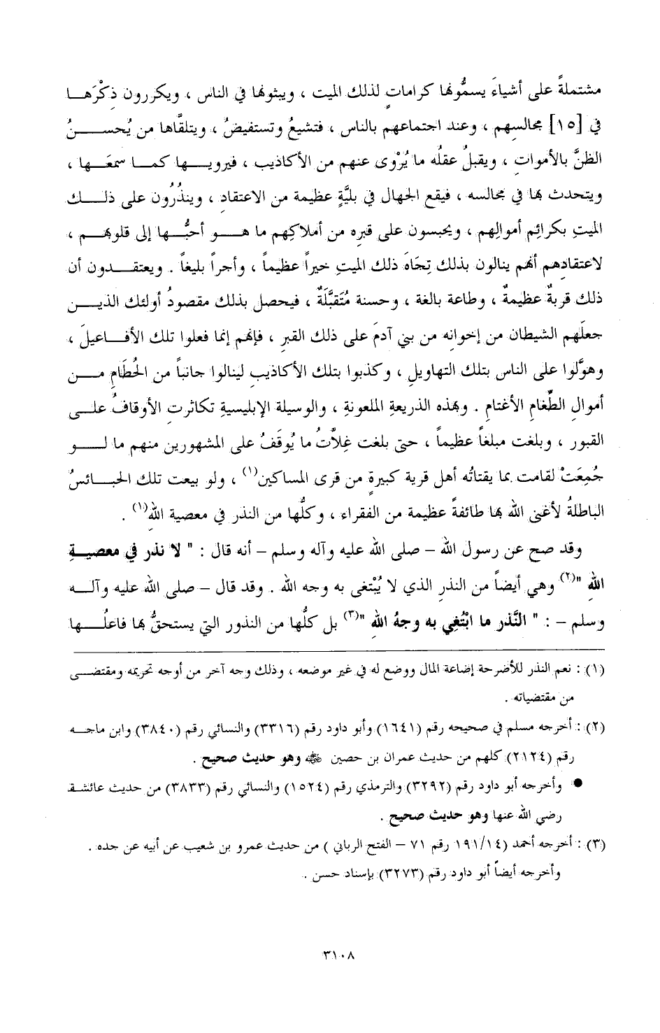 (¬3) أخرجه مسلم في صحيحه رقم (1641) وأبو داود رقم (3316) والنسائي رقم (3840) وابن ماجه رقم (2124) كلهم من حديث عمران - رضي الله عنه - وهو حديث صحيح. وأخرجه أبو داود رقم (3292) والترمذي رقم (1524) والنسائي رقم (3833) من حديث عائشة - رضي الله عنها - وهو حديث صحيح.