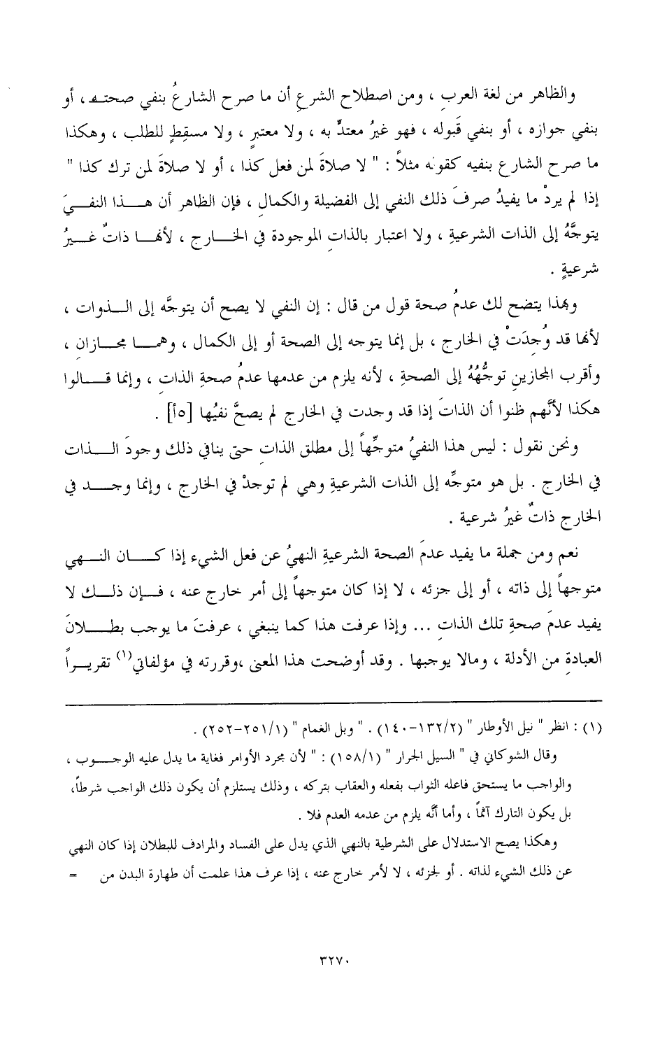 نعم ومن جملة ما يفيد عدم الصحة الشرعية النهي عن فعل الشيء إذا كان النهي متوجها إلى ذاته، أو إلى جزئه، لا إذا كان متوجها إلى أمر خارج عنه، فإن ذلك لا يفيد عدم صحة تلك الذات ... وإذا عرفت هذا كما ينبغي، عرفت ما يوجب بطلان العبادة من الأدلة، وما لا يوجبها. وقد أوضحت هذا المعنى، وقررته في مؤلفاتي (¬1) تقريرا