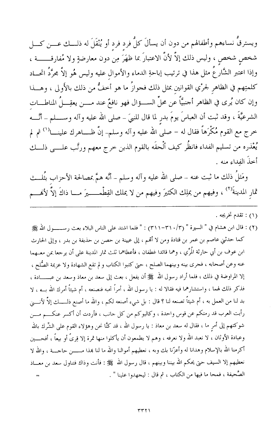ومثل ذلك ما ثبت عنه - صَلَّى اللهُ عَلَيْهِ وَآلِهِ وَسَلَّمَ - أنه هم بصالحة الأحزاب بثلث ثمار المدينة (¬2) وفيهم من يملك الكثير وفيهم من لا يملك القطمير ما ذاك إلا لأنهم
