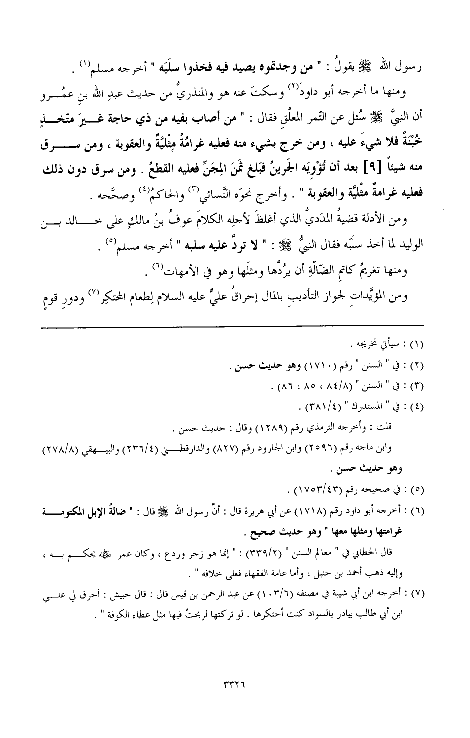 (¬6) أخرجه أبو داود رقم (1718) عن أبي هريرة قال: إن رسول الله - صَلَّى اللهُ عَلَيْهِ وَسَلَّمَ قال: " ضالة الإبل المكتومة غرامتها ومثلها معها " وهو حديث صحيح.