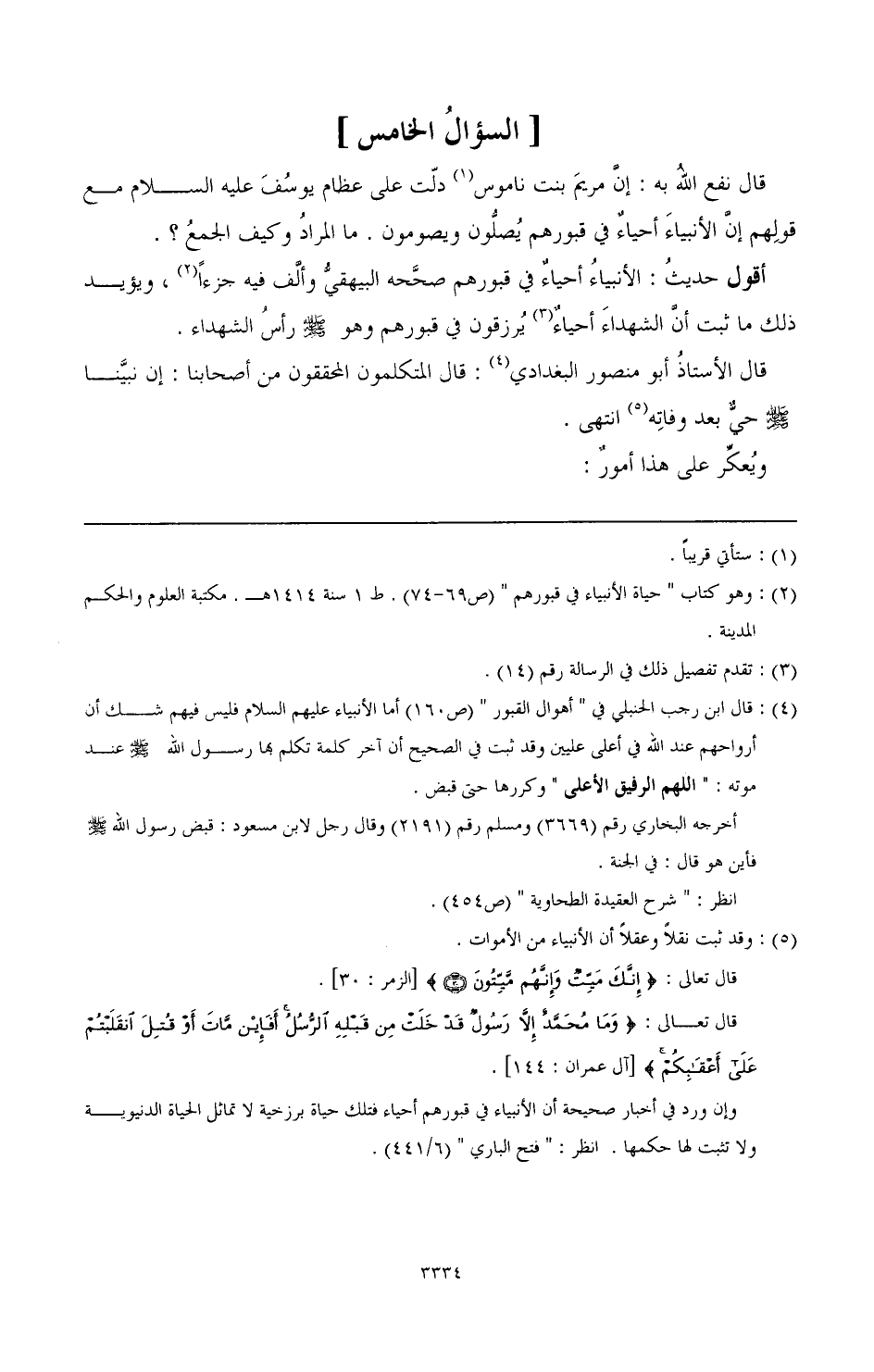 (¬2) وهو كتاب " حياة الأنبياء في قبورهم " (ص 69 - 74). ط 1 سنة 1414 هـ / مكتبة العلوم والحكم المدينة.