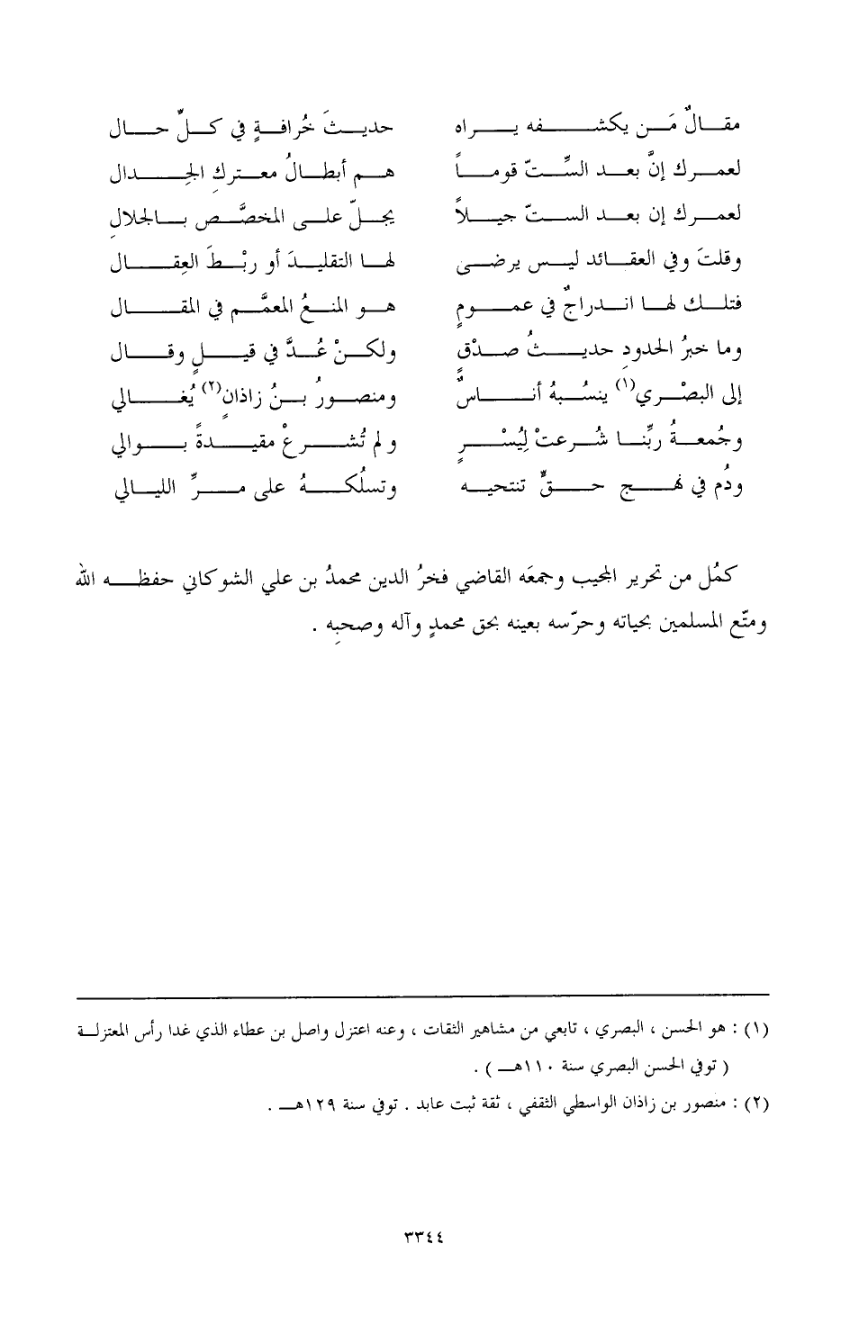 (¬1) هو الحسن، البصري، تابعي من مشاهير الثقات، وعنه اعتزل واصل بن عطاء الذي غدا رأس المعتزلة (توفي الحسن البصري سنة 110 هـ).