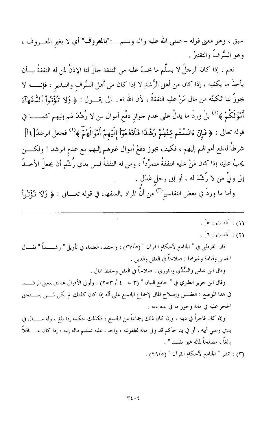 وأما ما ورد في بعض التفاسير (¬3) من أن المراد بالسفهاء في قوله تعالى: {وَلَا تُؤْتُوا