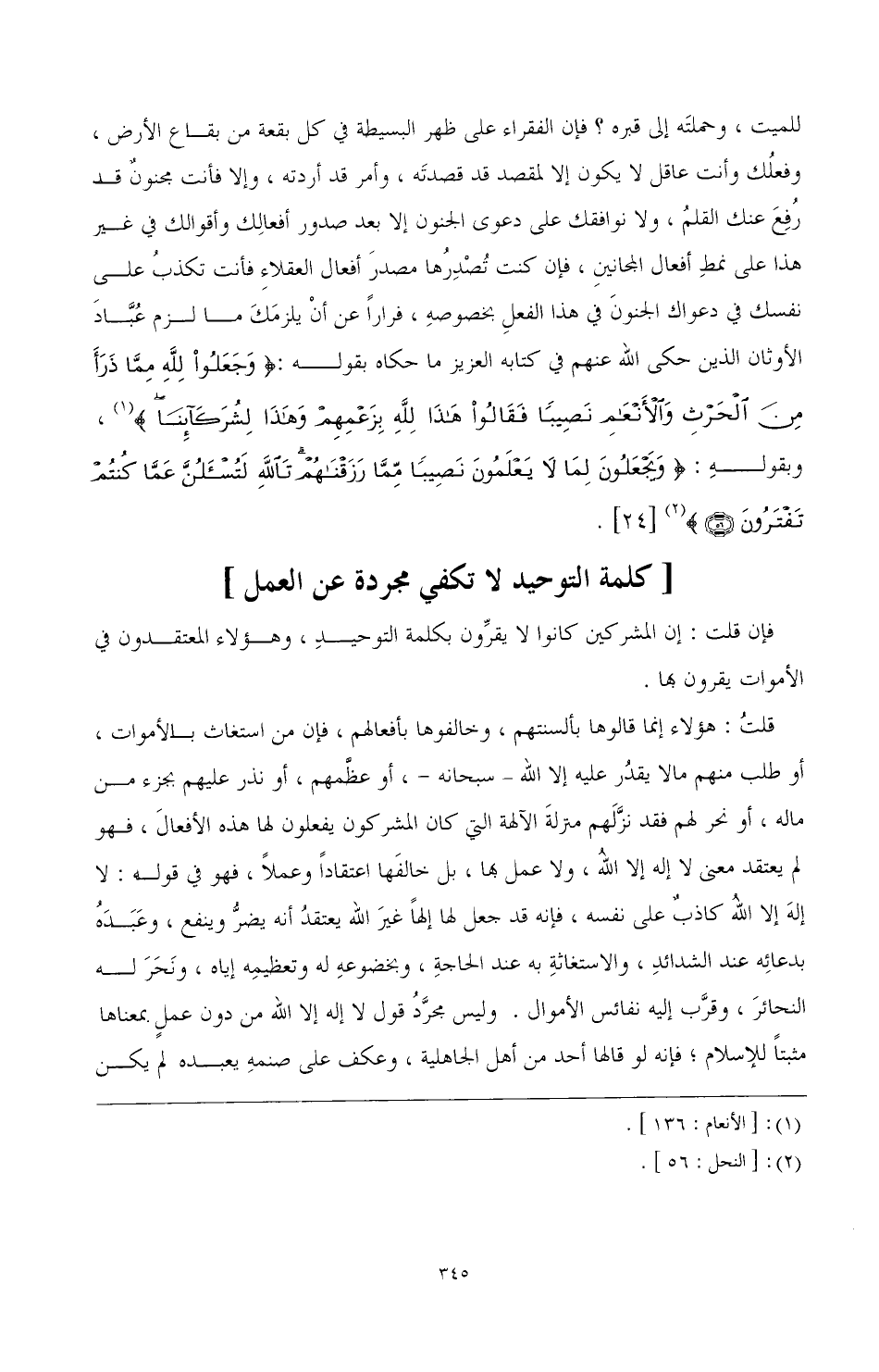 قلت: هؤلاء إنما قالوها بألسنتهم، وخالفوها بأفعالهم، فإن من استغاث بالأموات، أو طلب منهم ما لا يقدر عليه إلا الله - سبحانه-، أو عظمهم، أو نذر عليهم بجزء من ماله، أو نحر لهم فقد نزلهم منزلة الآلهة التي كان المشركون يفعلون لها هذه الأفعال، فهو يعتقد معنى لا إله إلا الله، ولا عمل بها، بل خالفها اعتقادا وعملا، فهو في قوله: لا إله إلا الله كاذب على نفسه، فإنه قد جعل لها إلها غير الله يعتقد أنه يضر وينفع، وعبده بدعائه عند الشدائد، والاستغاثة به عند الحاجة، وبخضوعه له وتعظيمه إياه، ونحر له النحائر، وقرب إليه نفائس الأموال. وليس مجرد قول لا إله إلا الله من دون عمل بمعناها مثبتا للإسلام، فإنه لو قالها أحد من أهل الجاهلية، وعكف على صنمه يعبده لم يكن