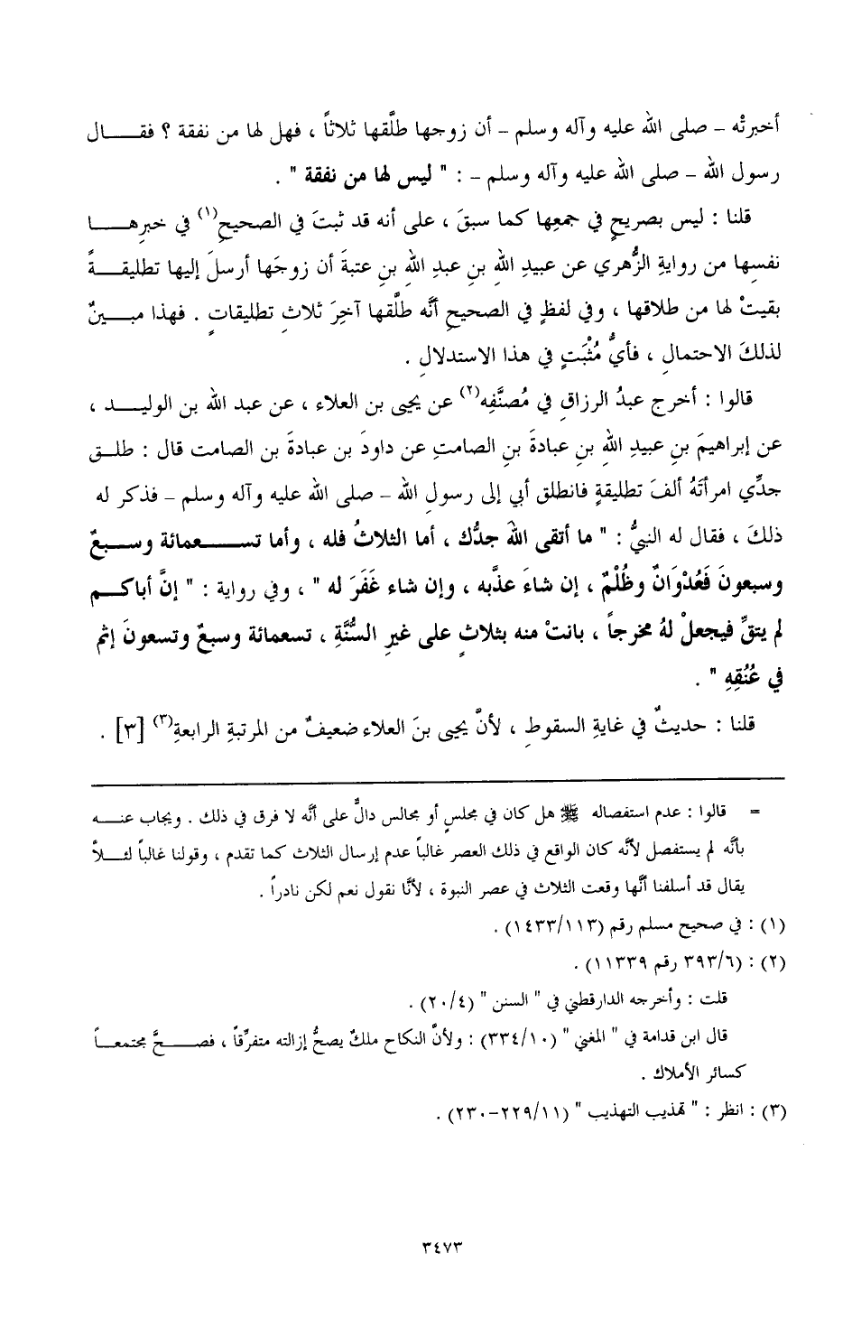 قالوا: أخرج عبد الرزاق في مصنفه (¬2) عن يحيى بن العلاء، عن عبد الله بن الوليد، عن إبراهيم بن عبيد الله بن عبادة بن الصامت عن داود بن عبادة بن الصامت قال: طلق جدي امرأته ألف تطليقة فانطلق أبي إلى رسول الله - صَلَّى اللهُ عَلَيْهِ وَآلِهِ وَسَلَّمَ - فذكر له ذلك، فقال النبي: " ما اتقى الله جدك، أما الثلاث فله، وأما تسعمائة وسبع وسبعون فعدوان وظلم، إن شاء عذبه، وإن شاء غفر له "، وفي رواية: " إن أباكم لم يتق فيجعل له مخرجا، بانت منه بثلاث على غير السنة، تسعمائة وسبع وتسعون إثم في عنقه ".