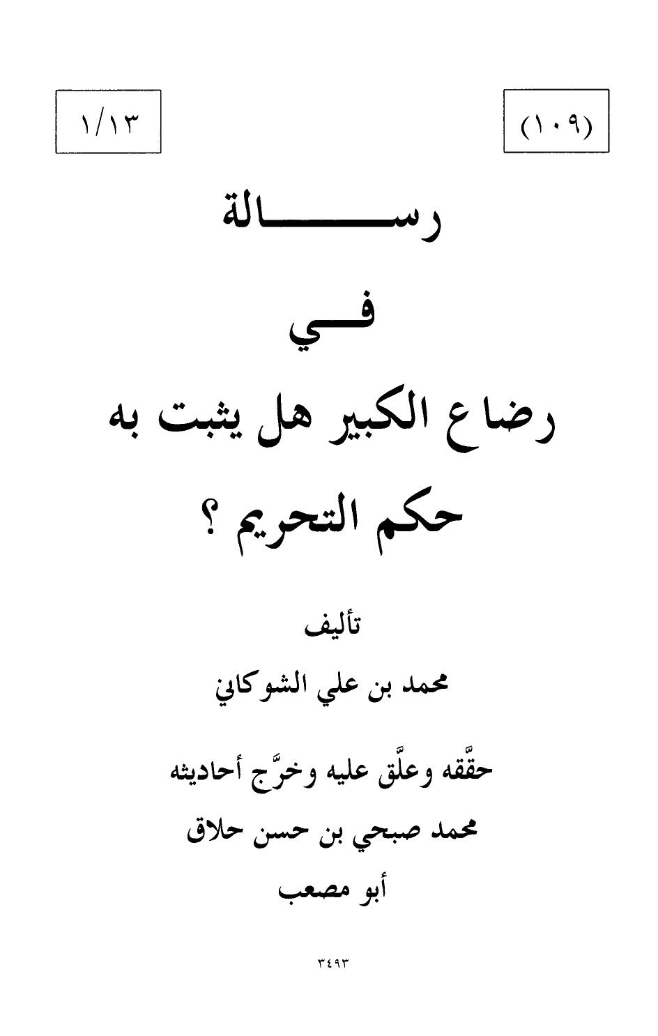 رسالة في رضاع الكبير هل يثبت به حكم التحريم؟
