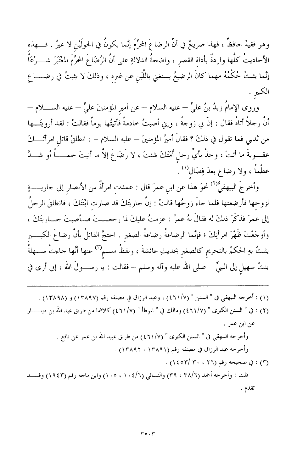 وهو فقيه حافظ، فهذا صريح في أن الرضاع المحرم إنما يكون في الحولين لا غير. فهذه الأحاديث كلها واردة بأداة القصر، واضحة الدلالة على أن الرضاع المحرم المعتبر شرعا إنما يثبت حكمه مهما كان الرضيع يستغني باللبن عن غيره، وذلك لا يثبت في رضاع الكبير.