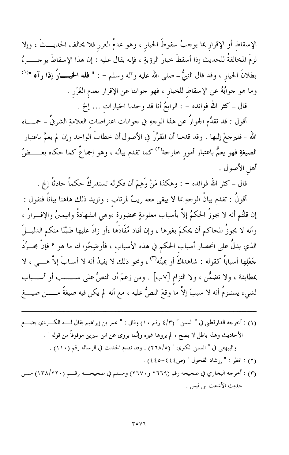 قال - كثر الله فوائده -: الرابع أنا قد وجدنا الخيارات ... إلخ.