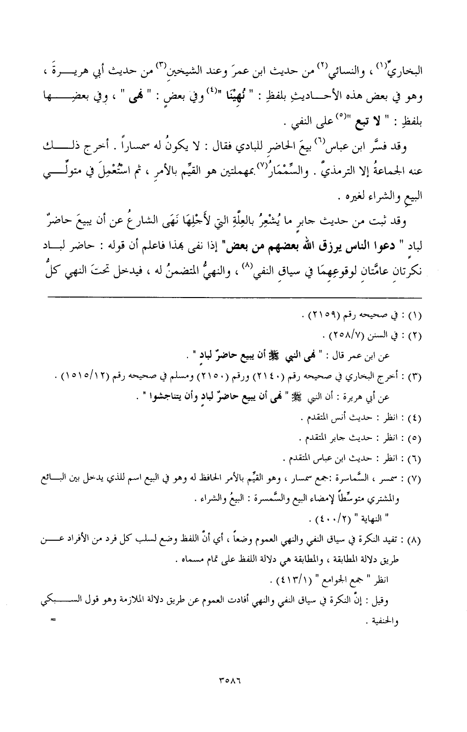 وقد ثبت من حديث جابر ما يشعر بالعلة التي لأجلها نهى الشارع عن أن يبيع حاضر لبادي " دعوا الناس يرزق الله بعضهم من بعض " إذا نفى بهذا فاعلم أن قوله: حاضر لباد نكرتان عامتان لوقوعهما في سياق النفي (¬8) والنهي المتضمن له، فيدخل تحت النهي كل