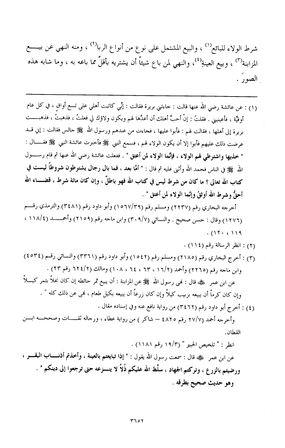 (¬3) أخرج البخاري رقم (2158) ومسلم رقم (1542) وأبو داود رقم (3361) والنسائي رقم (4534) وابن ماجه رقم (2256) وأحمد (2/ 16، 63، 64، 108) ومالك (2/ 624رقم 23).