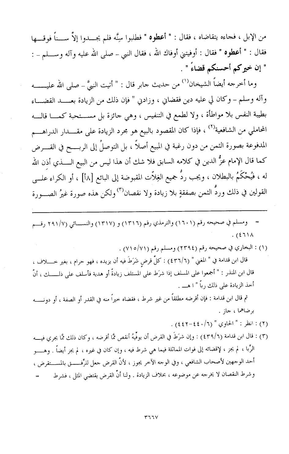 (¬1) البخاري في صحيحه رقم (2394) ومسلم رقم (71/ 715). قال ابن قدامة في " المغني " (6/ 436): كل قرض شرط فيه أن يزيده فهو حرام، بغير خلاف، قال: ابن المنذر: " أجمعوا على المسلف إذا شرط على المستلف زيادة أو هدية فأسلف على ذلك، أن أخذ الزيادة على ذلك ربا " اهـ.