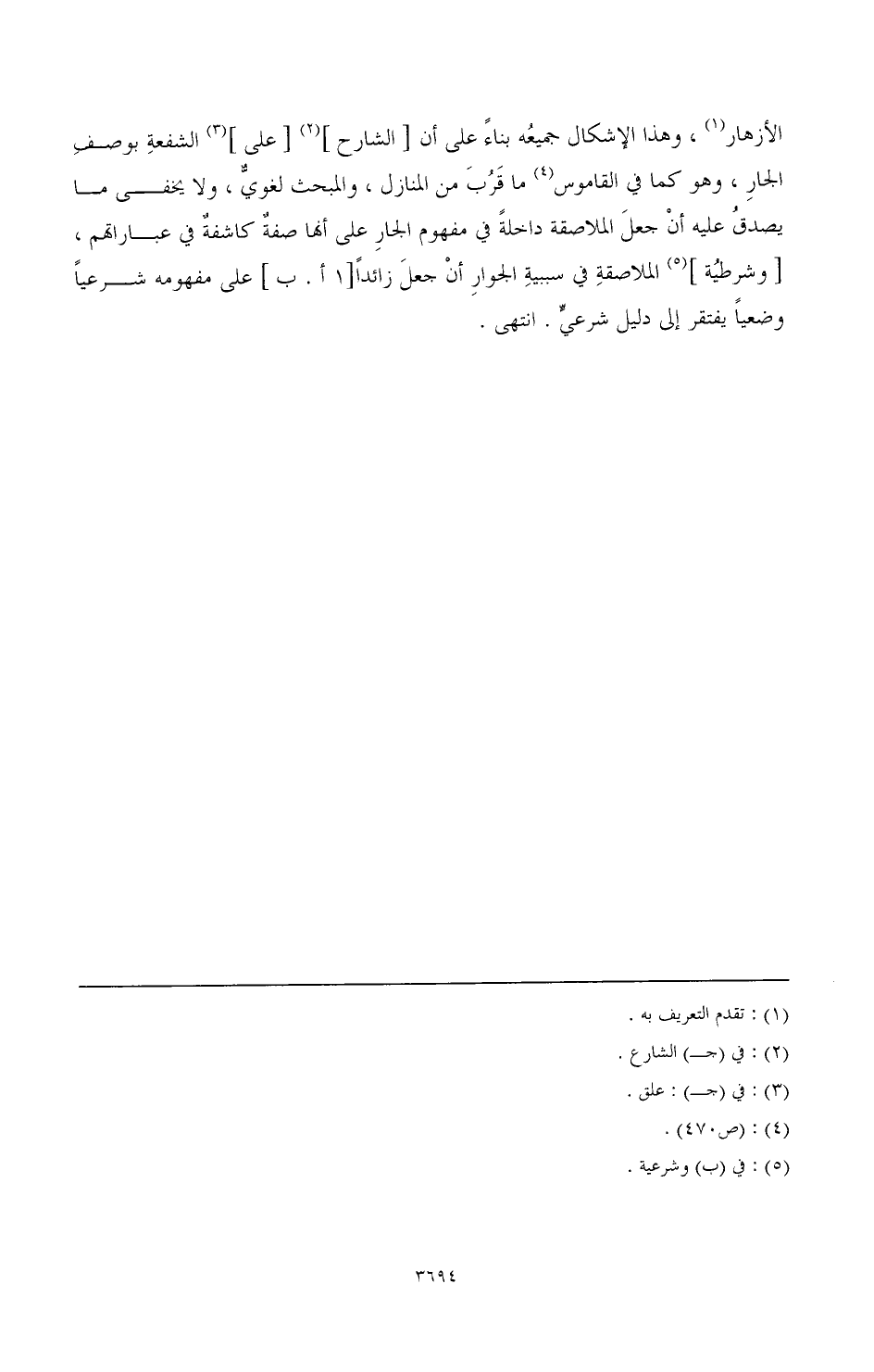 الأزهار (¬1)، وهذا الإشكال جمعية بناء على أن [الشارح] (¬2) [على] (¬3) الشفعة بوصف الجار، وهو كما في القاموس (¬4) ما قرب من المنازل، والمبحث لغوي، ولا يخفي ما يصدق عليه أن الملاصقة داخل في مفهوم الجار على أنها صفة كاشفة في عباراتهم، [وشرطية] (¬5) الملاصقة في سببية الجوار أن جعل زائد [1 أ. ب] على مفهومه شرعيا وضعيا يفتقر إلى دليل شرعي. انتهى.