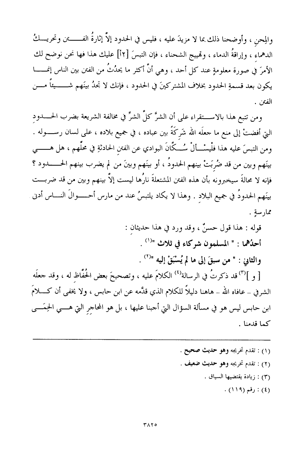 أحدُهما: "المسلمون شركاء في ثلاث" (¬1).