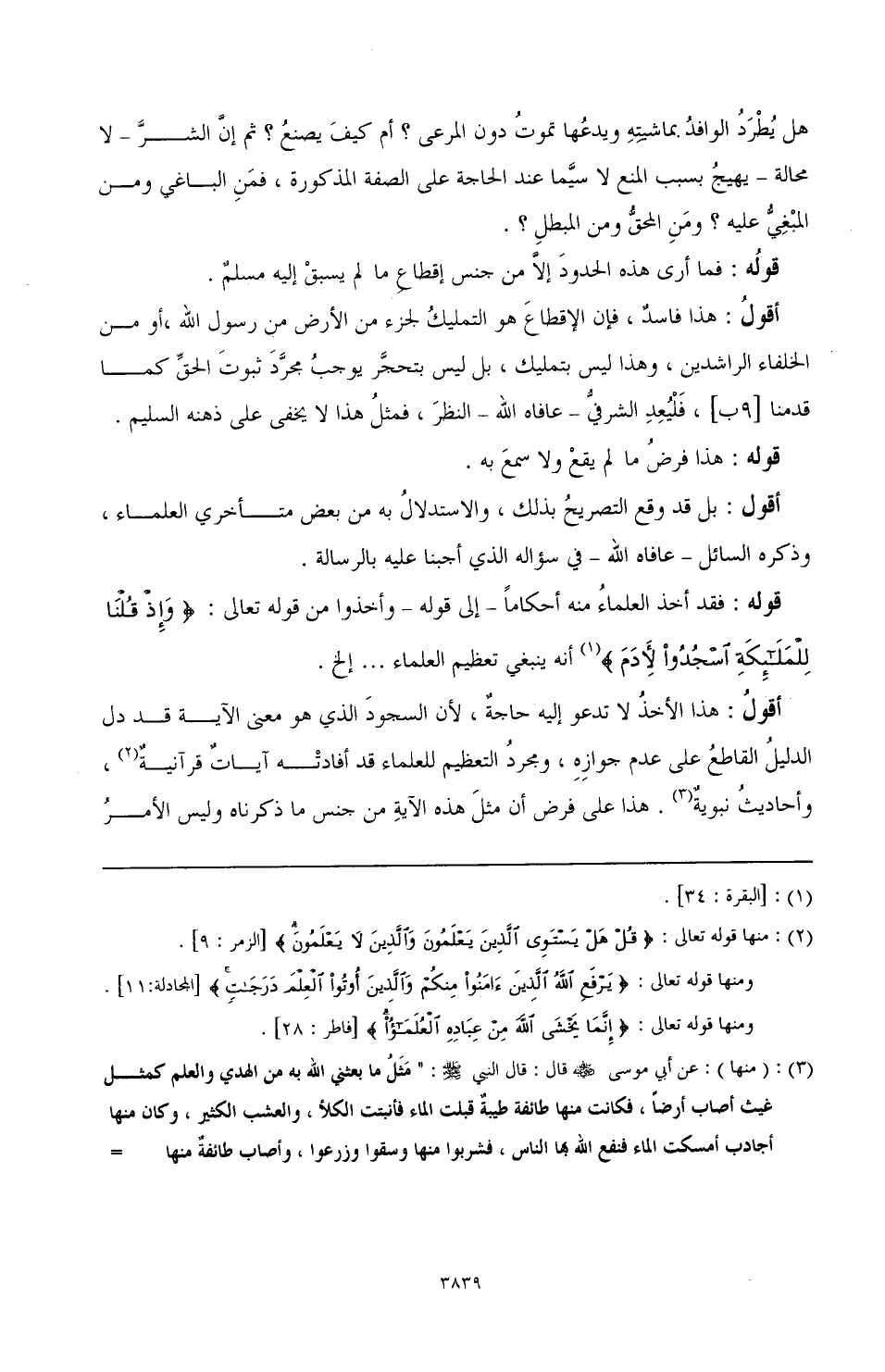 (¬2) منها قوله تعالى: {قُلْ هَلْ يَسْتَوِي الَّذِينَ يَعْلَمُونَ وَالَّذِينَ لَا يَعْلَمُونَ} [الزمر: 9].