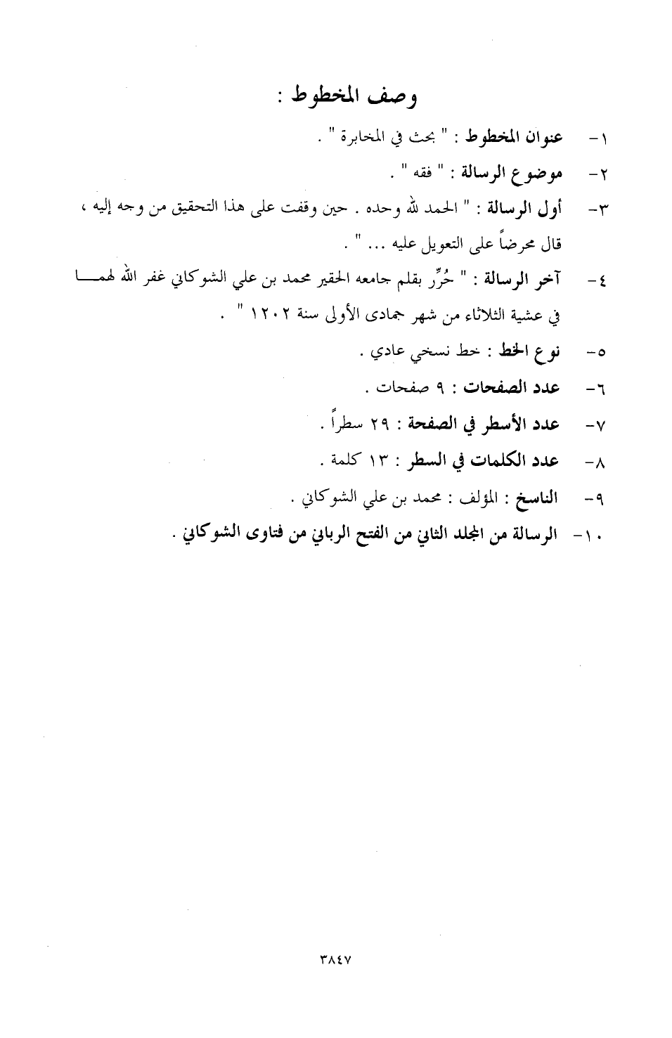 10 - الرسالة من المجلد الثاني من الفتح الرباني من فتاوى الشوكاني.