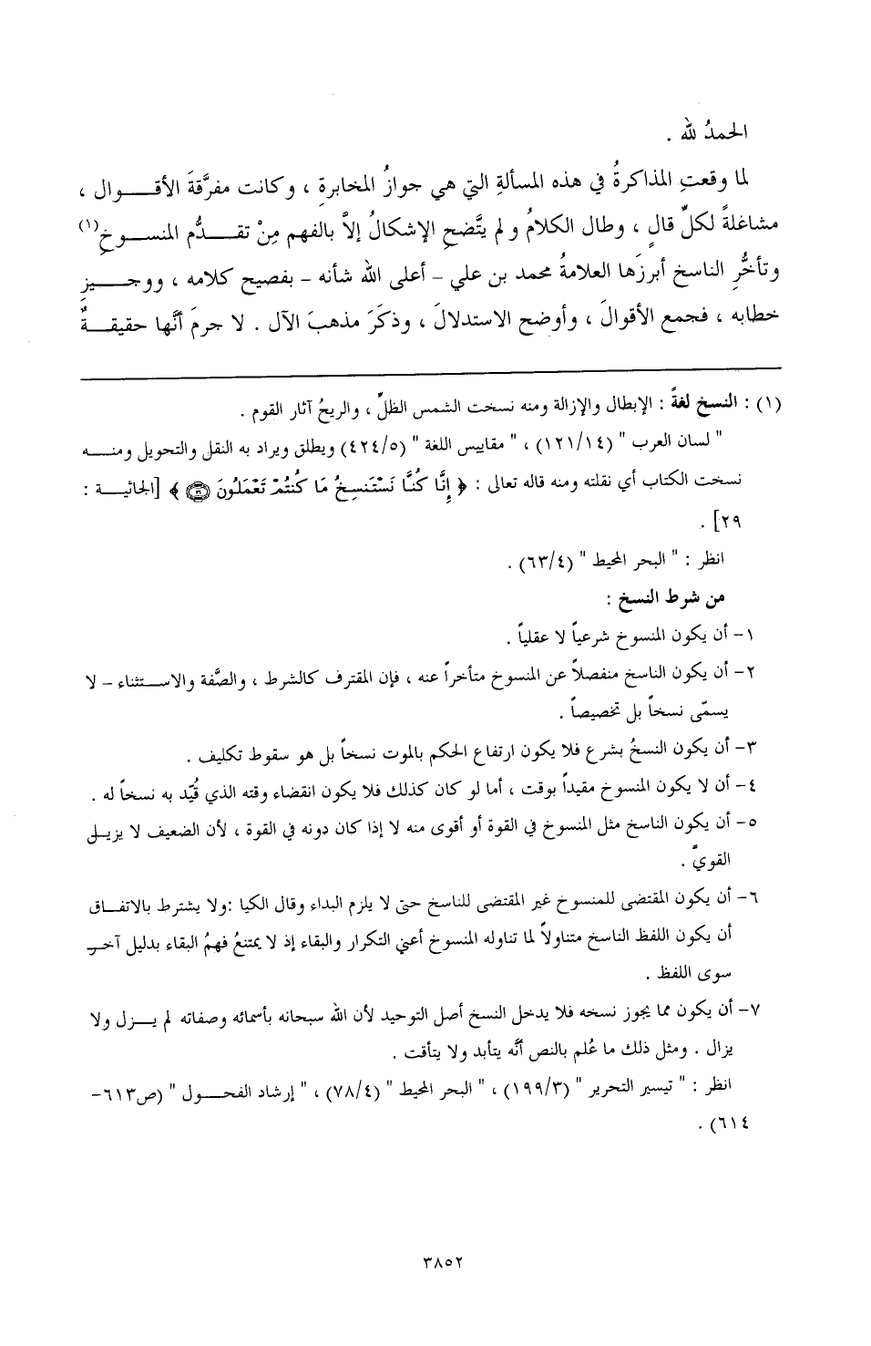 (¬1) النسخ لغةً: الإبطال والإزالة ومنه نسخت الشمس الظلِّ، والريحُ آثار القوم. "