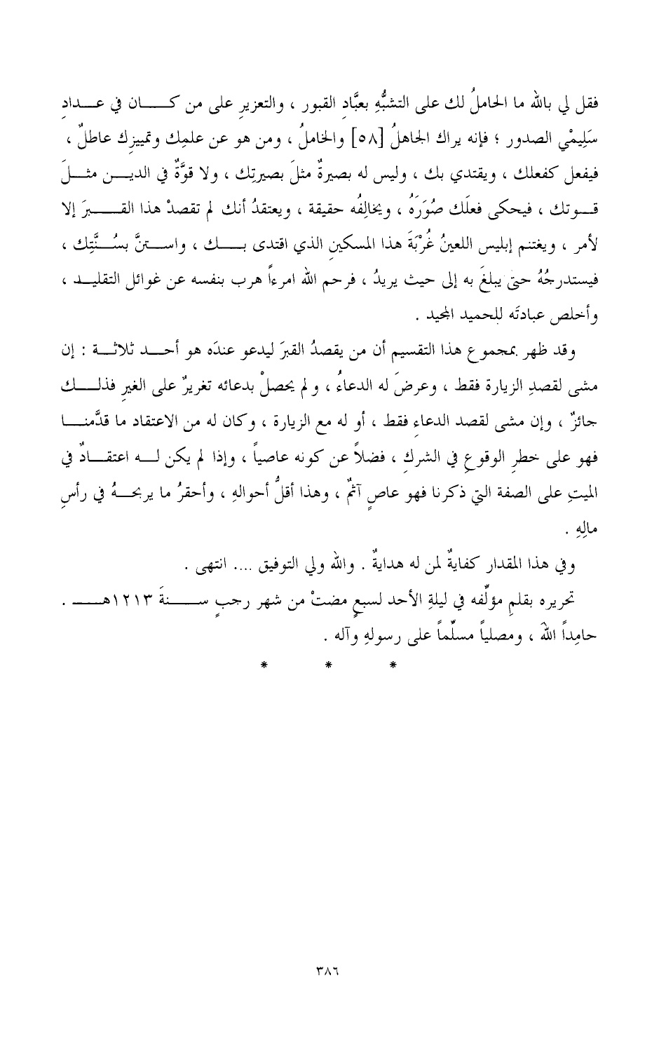 تحريره بقلم مؤلفه في ليلة الأحد لسبع مضت من شهر رجب سنة 1213هـ. حامدا الله، ومصليا مسلما على رسوله وآله.
