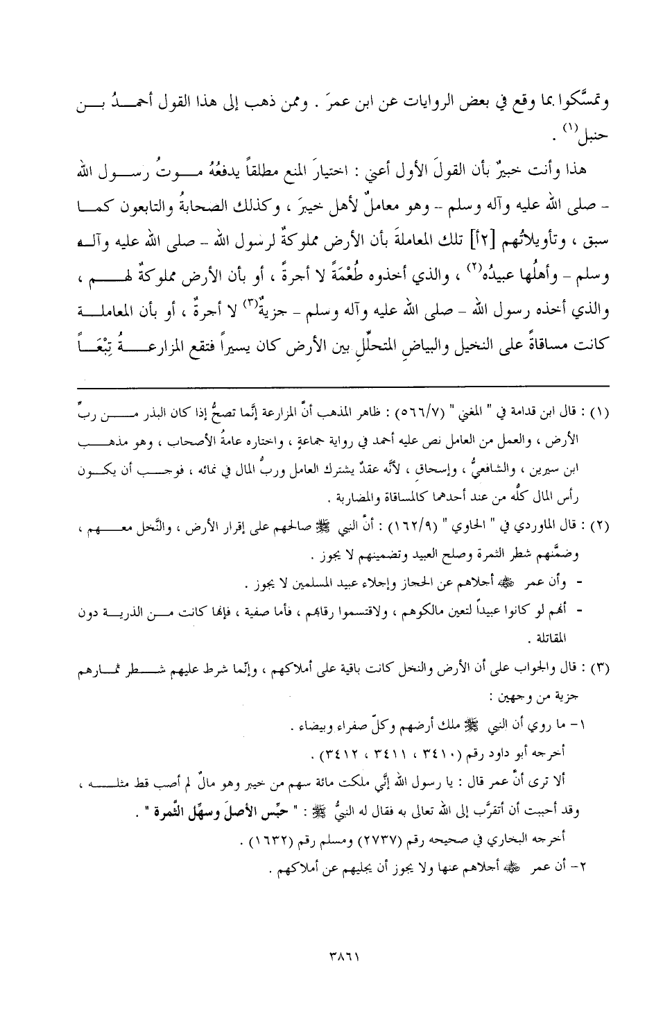 (¬3) قال والجواب على أن الأرض والنخل كانت باقية على أملاكهم، وإنّما شرط عليهم شطر ثمارهم جزية وجهين: