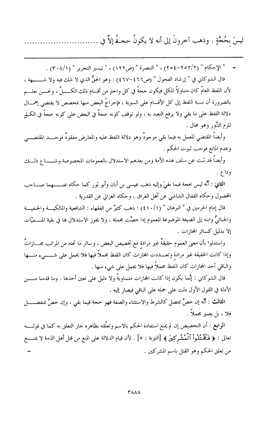 ليسَ بِحُجَّةٍ. وذهب آخرونَ إلى أنه لا يكونُ حجةً إلاَّ في .....................................