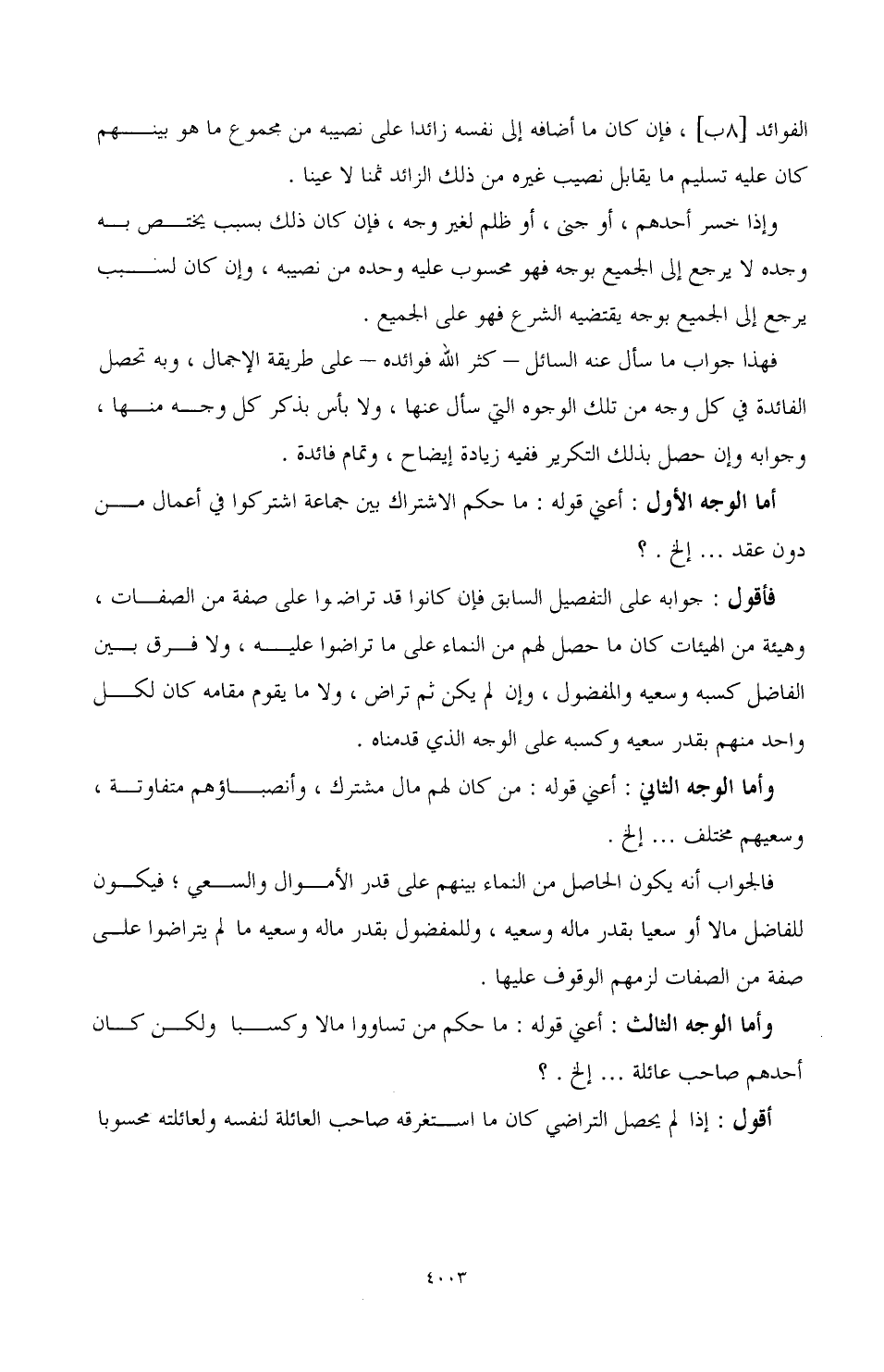 وأما الوجه الثاني: أعني قوله: من كان لهم مال مشترك، وأنصباؤهم متفاوتة، وسعيهم مختلف