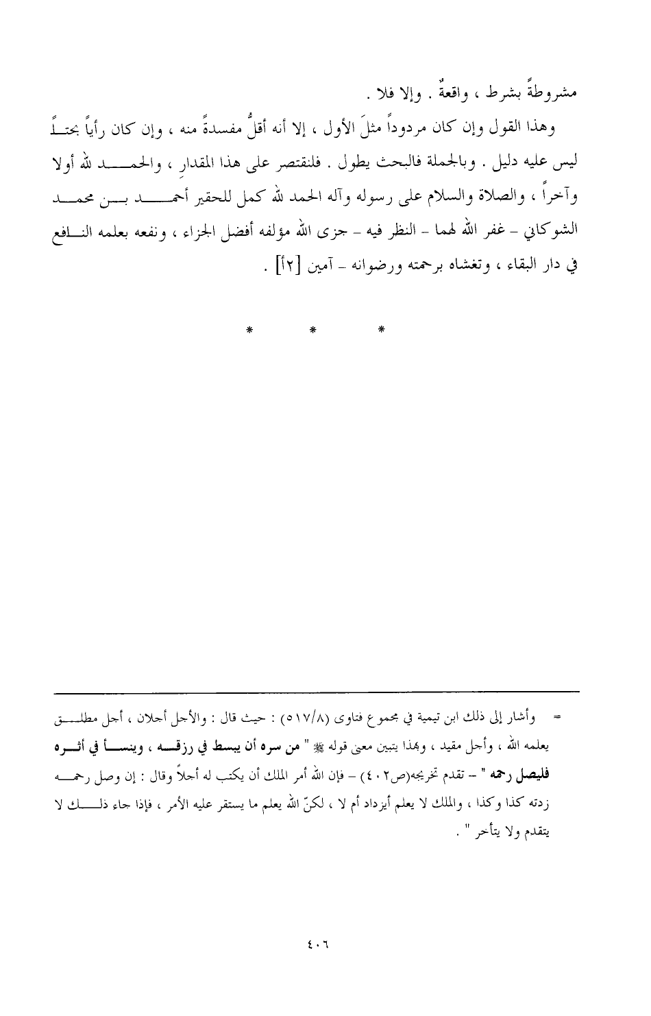 وهذا القول وإن كان مردودا مثل الأول، إلا أنه أقل مفسدة منه، وإن كان رأيا بحتا ليس عليه دليل. وبالجملة فالبحث يطول. فلنقتصر على هذا المقدار، والحمد لله أولا وآخرا، والصلاة والسلام على رسوله وآله. الحمد لله، كمل للحقير أحمد بن محمد الشوكاني -غفر الله لهما- النظر فيه - جزى الله مؤلفه أفضل الجزاء، ونفعه بعلمه النافع في دار البقاء، وتغشاه برحمته ورضوانه - آمين [2 أ].