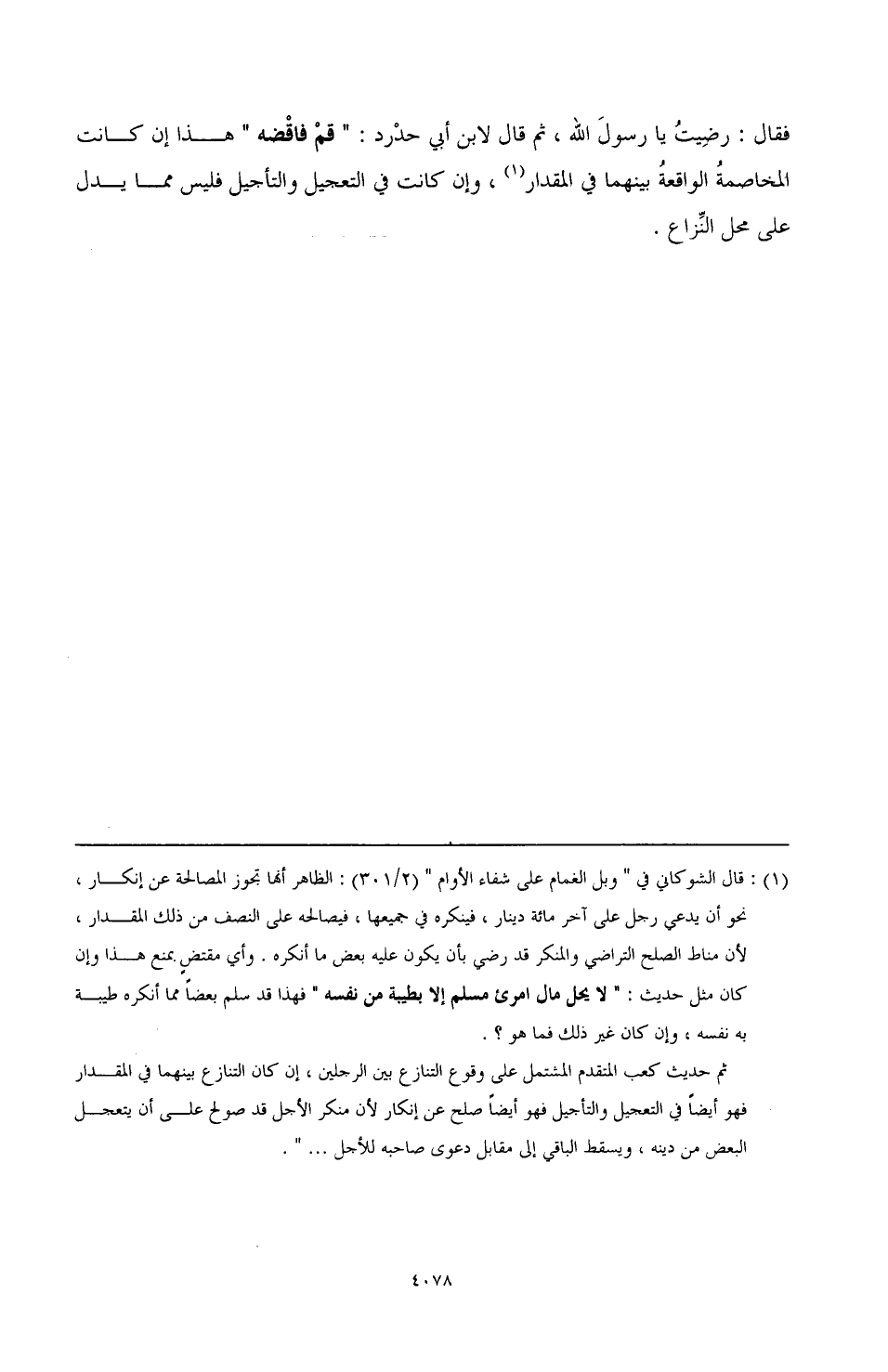 فقال: رضيتُ يا رسولَ الله، ثم قال لابن أبي حدْرد: "قم فاقْضه" هذا إن كانت المخاصمة الواقعةُ بينهما في المقدار (¬1)، وإن كانت في التعجيل والتأجيل فليس مما يدل على محل النِّزاع.
