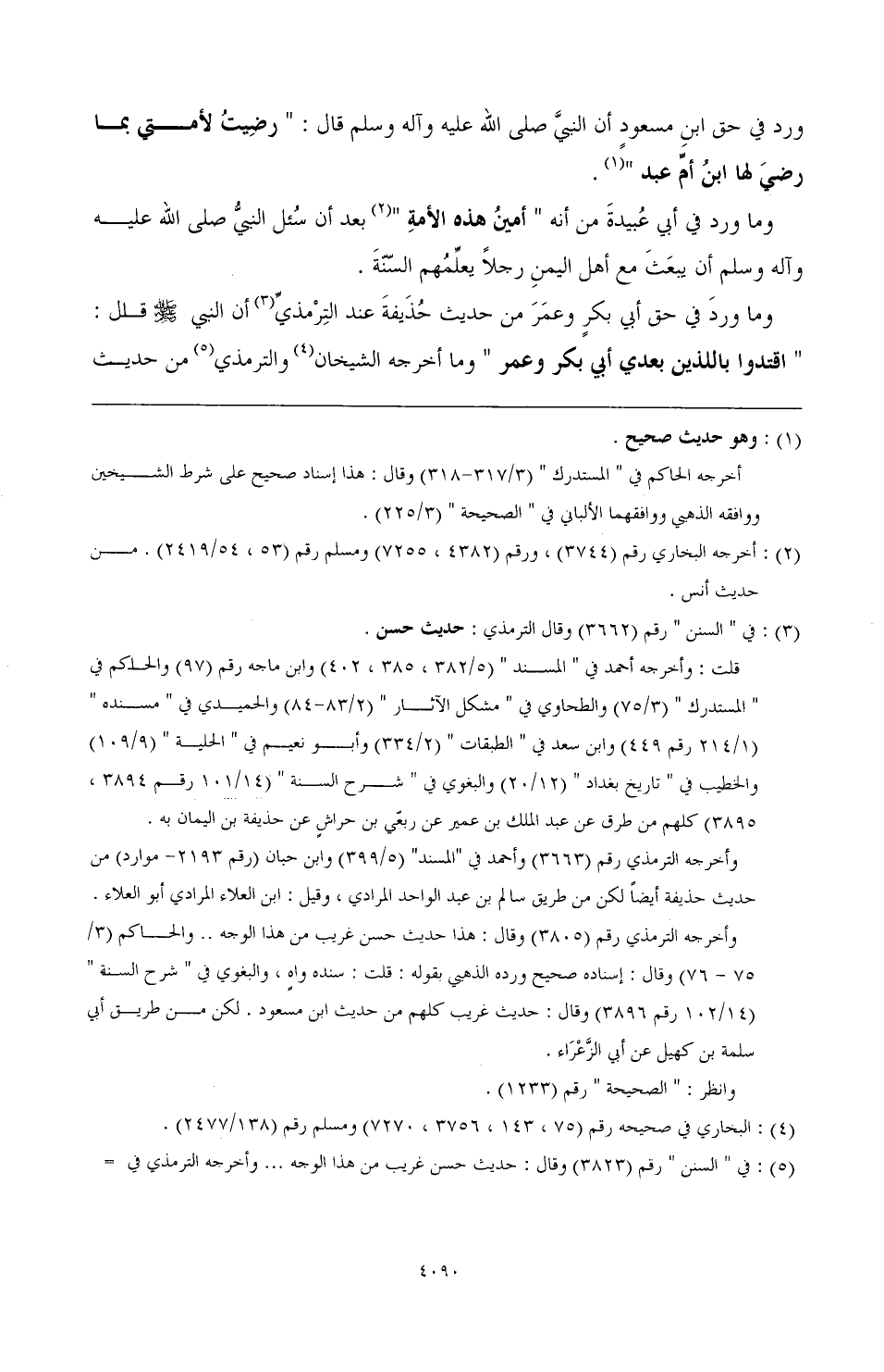 وما ورد في أبي عُبيدةَ من أنه "أمينُ هذه الأمة" (¬2) بعد أن سُئل النبيُّ صَلَّى اللهُ عَلَيْهِ وَآلِهِ وَسَلَّمَ أن يبعثَ مع أهل اليمن رجلاً يعلِّمُهم السّنة.