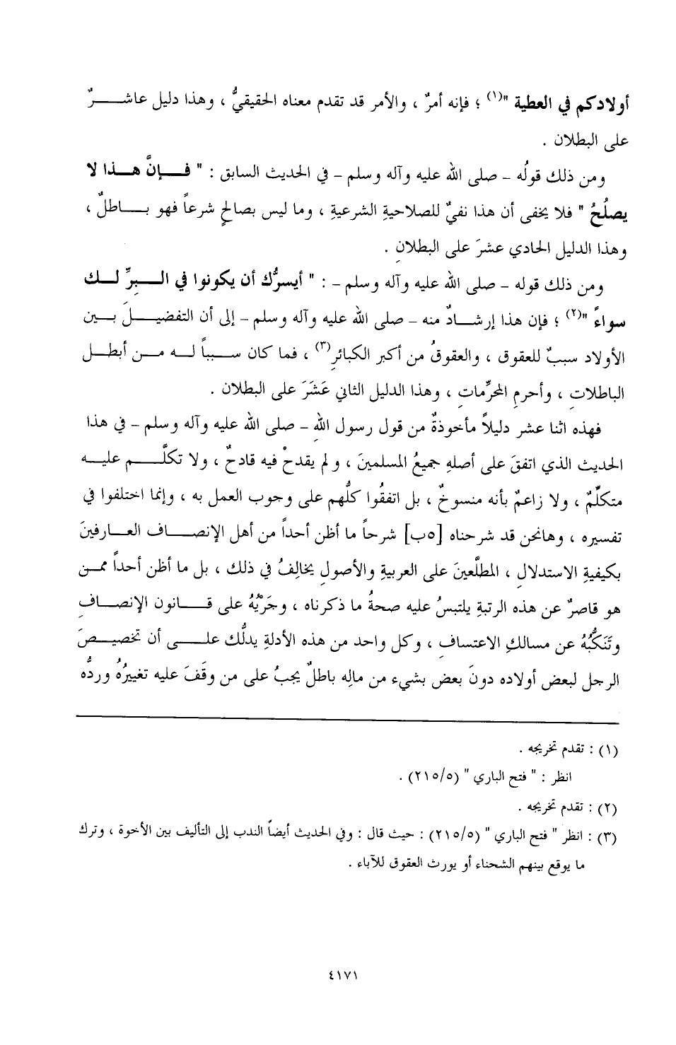 ومن ذلك قوله ـ صَلَّى اللهُ عَلَيْهِ وَآلِهِ وَسَلَّمَ ـ: "أيسرُّك أن يكون في البِرّ لك سواءٌ" (¬2)؛ فإن هذا إرشادٌ منه ـ صَلَّى اللهُ عَلَيْهِ وَآلِهِ وَسَلَّمَ ـ إلى التفضيلَ بين الأولاد سببٌ للعقوق، والعقوقُ من أكبر الكبائر (¬3)، فما كان سببًا له من أبطل الباطلاتِ، وأحرِم المحرِّماتِ، وهذا الدليل الثاني عَشَرَ على البطلان.