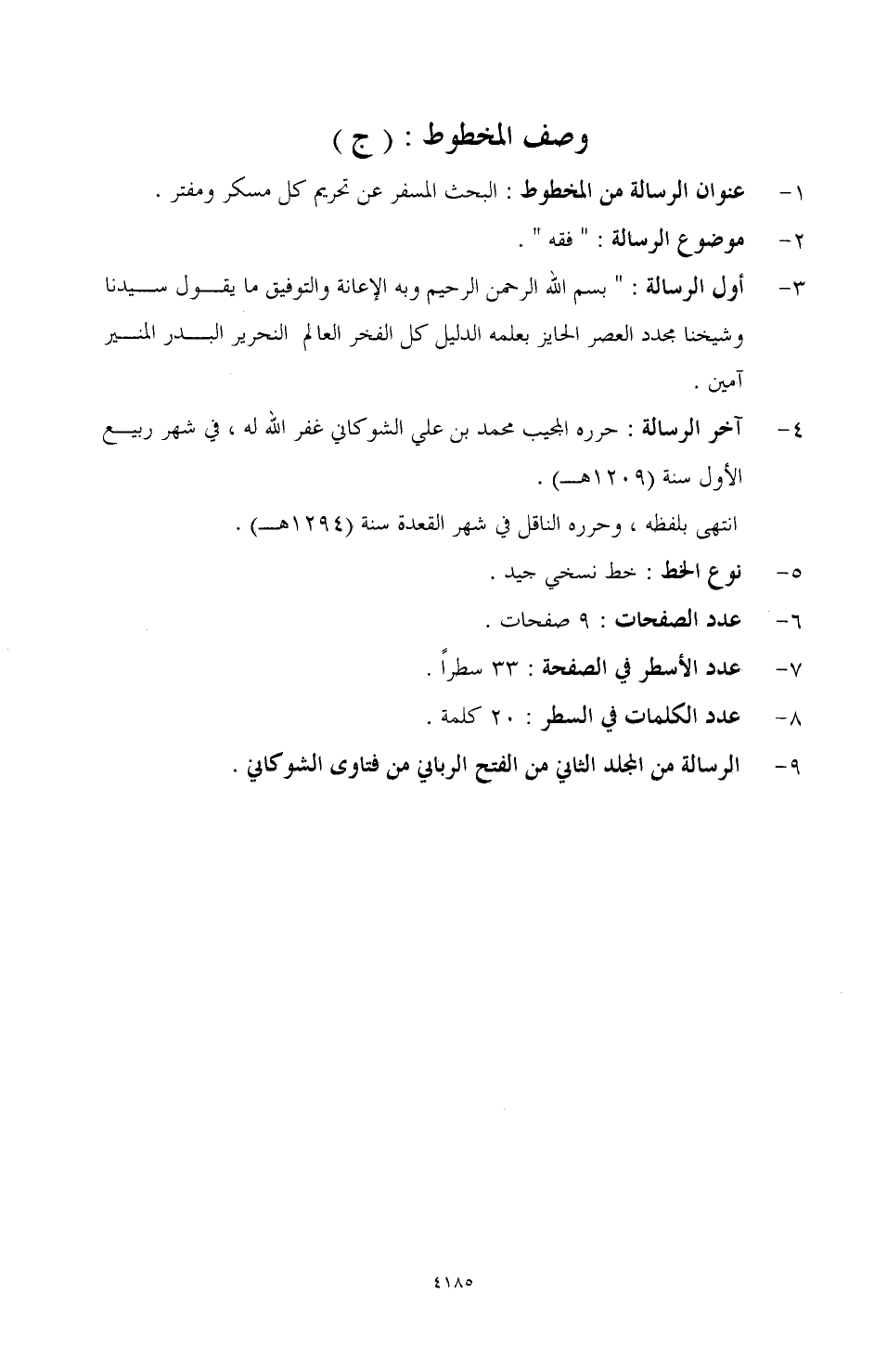 9 - الرسالة من المجلد الثاني من الفتح الرباني من فتاوى الشوكاني.
