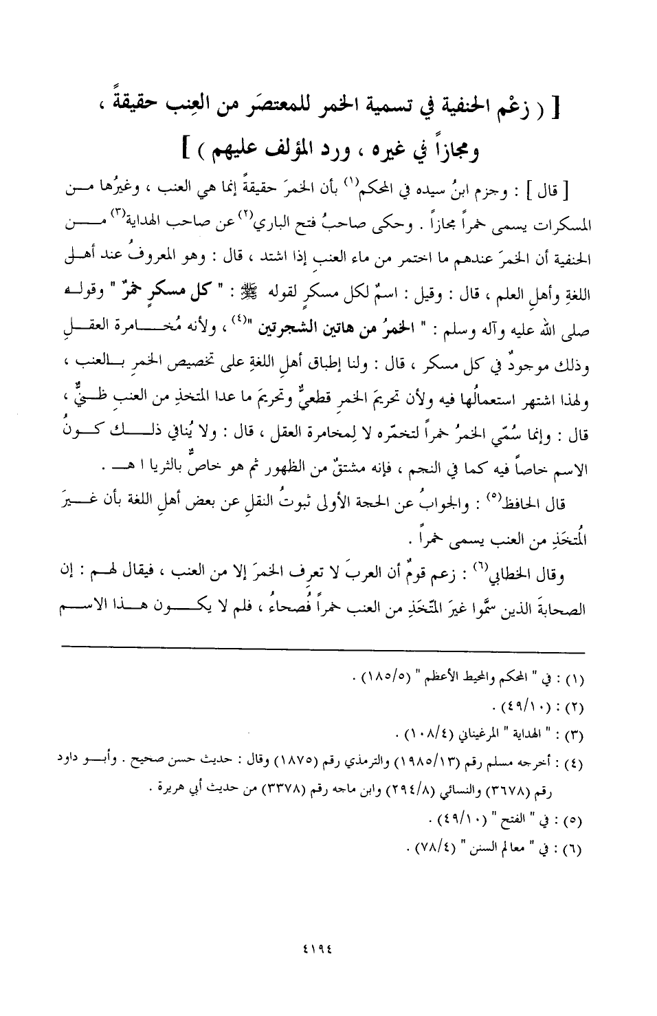 [(زعْم الحنفية في تسمية الخمر للمعتصَر من العِنب حقيقةً، ومجازًا في غيره، ورد المؤلف عليهم)]